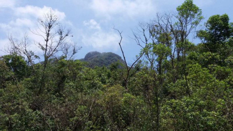 Pico do Itapanhaú (vista no centro) e Pico do Garrafão (visto na direita entre as folhas)