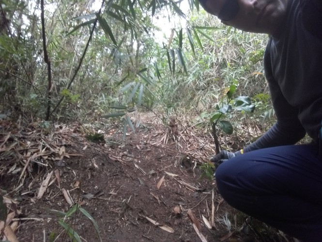 Então, já sabendo onde seria o caminho a seguir para o pico, quando chegamos ao local, vimos que era a TRIFURCAÇÃO bem conhecida por lá, bastando apenas subir á esquerda (para quem vem da trilha do lobisomem), a via do meio é para quem vai sentido Pedra do Sapo e a da direita não chegamos a completá la devido ao horário, mas com base no tracklog ela sairá numa trilha que leva ao Itapanhaú.