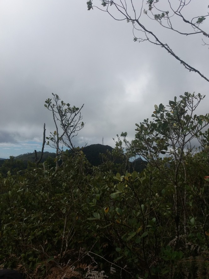 Enfim, chegamos ao cume e, como me avisaram, é feinho lá. Não tem vista e a vegetação alta atrapalha e dá trabalho para tirar fotos, tentei tirar algumas de alguns picos....