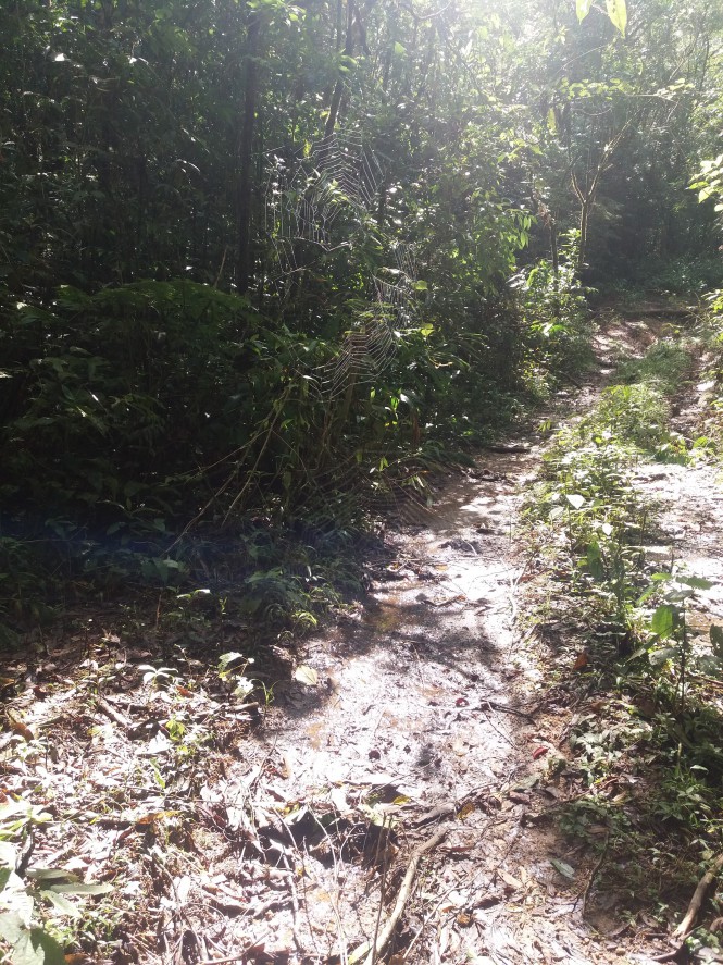 Teias de aranha pelo caminho são muito comuns por lá
