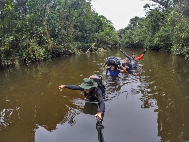 Via trilha do Lobisomem, atravessando o rio Sertãozinho até o Lago dos Andes,Cachoeira da Light e Poço das Antas,Cachoeira da Pedra Furada