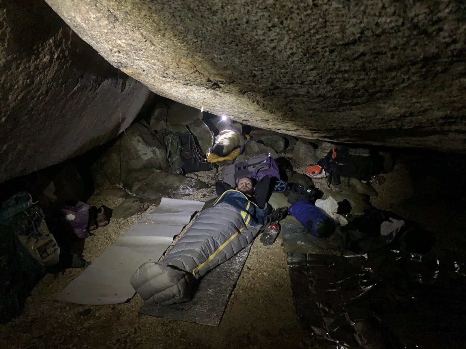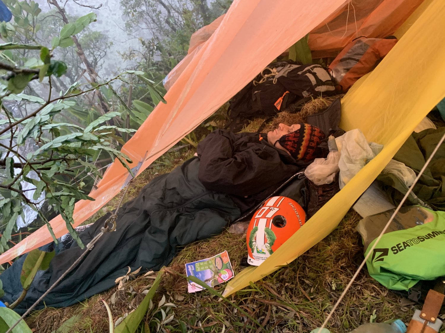 Quando os estudos foram iniciados meses atrás, já tínhamos em mente de que no primeiro dia dificilmente alcançaríamos o cume, então tentaríamos dormir o mais perto possível dele, acamparíamos e no outro dia tentaríamos achar uma maneira de tentar escalar os grandes blocos finais, achando uma passagem, talvez subindo por chaminés ou qualquer outras fendas que pudesse nos levar ao topo, isso tudo na teoria.