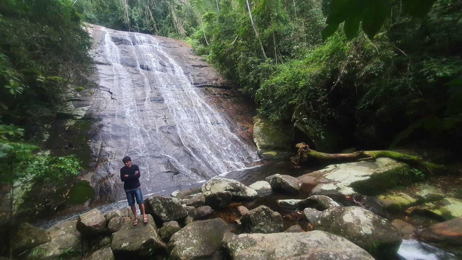 Na volta, encontro uma bifurcação à esquerda, que havia me passado batido e resolvo conferir. Ela vai descendo sem dó e é preciso se segurar nas árvores para perder altitude, até que avisto o branco da queda d’água e desço em definitivo até o pé da CACHOEIRA VÉU DE NOIVAS DA RUÍNA DA LAGOINHA.