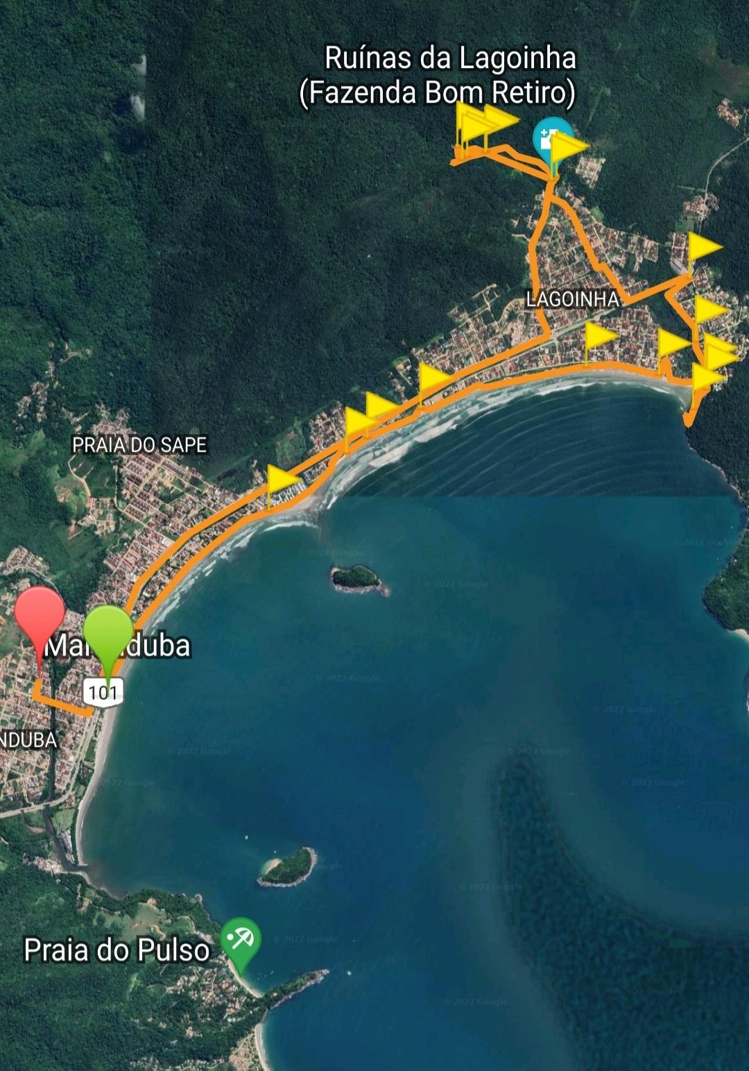 Subo em direção à Rio-Santos, por dentro do condomínio e logo saí na rodovia e pego para a esquerda e me ponha a marchar vagarosamente, uma perna à frente da outra. Eu poderia simplesmente esperar um ônibus e voltar para casa em Maranduba, onde estavam minha filha e o namorado, mas prefiro continuar minha jornada a pé mesmo, mas como ser estúpido ainda não paga imposto, me lembro que logo à frente tem a entrada à direita da rodovia que leva até as RUÍNAS DA LAGOINHA, que, apesar de frequentar esse litoral há muito tempo, nunca havia me animado a desviar da minha rota para ir lá conhecer, então pensei: É HOJE!