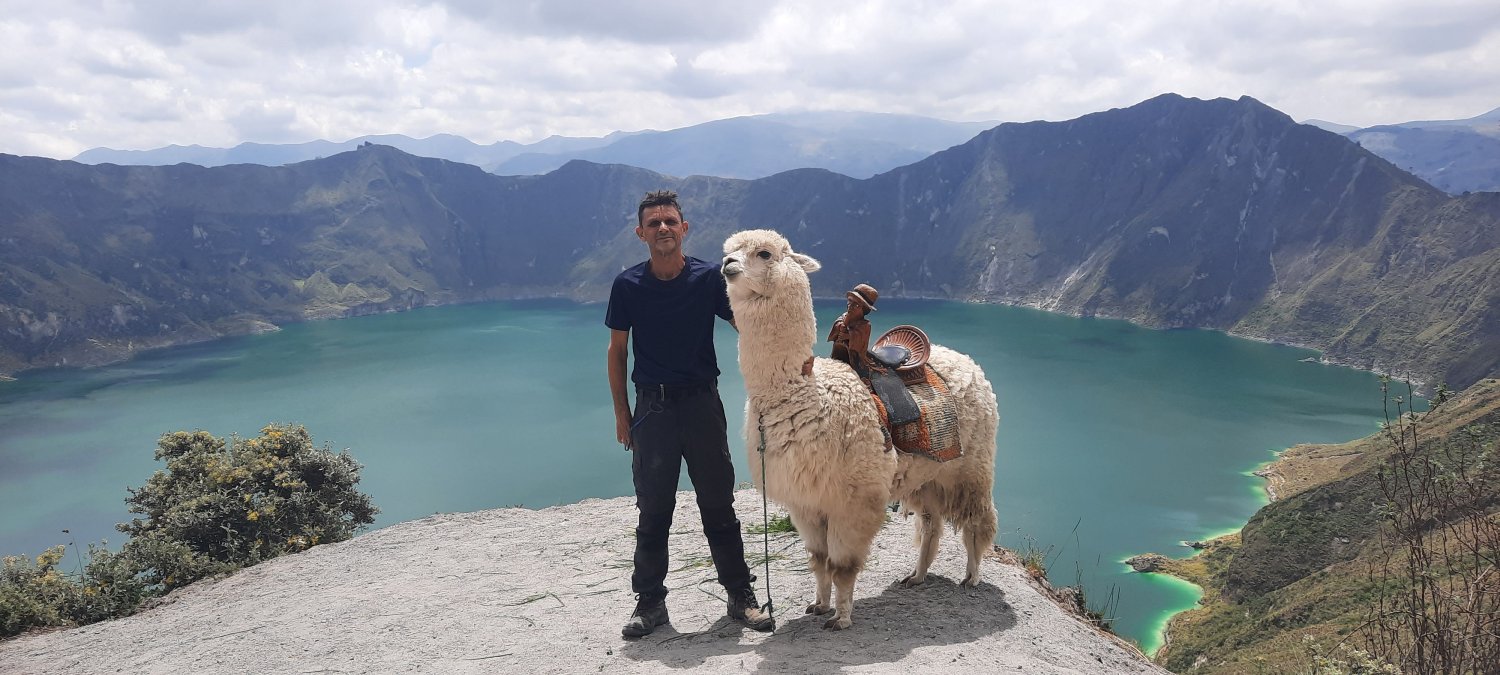 As cores do lago, que inundam a cratera, mudam com a dança da luz do sol , vão de azul para um verde vibrante . Mas nada vibra mais que a nossa alma aventureira a observar tudo lá de cima ou la de baixo, com as mãos tocando a água que se estendem por incríveis 250 metros de profundidade . Ali não parecemos ser nada diante da grandeza da cratera e eu só faço imaginar o dia que aquilo tudo explodiu e damos graças por saber que, por hora, está extinto e o unico perrengue que vamos passar, é ter que retornar para o topo do vulcão, tentando achar ar e energia para que nós mesmos não sejamos extintos como o GIGANTE QUILOTOA.
