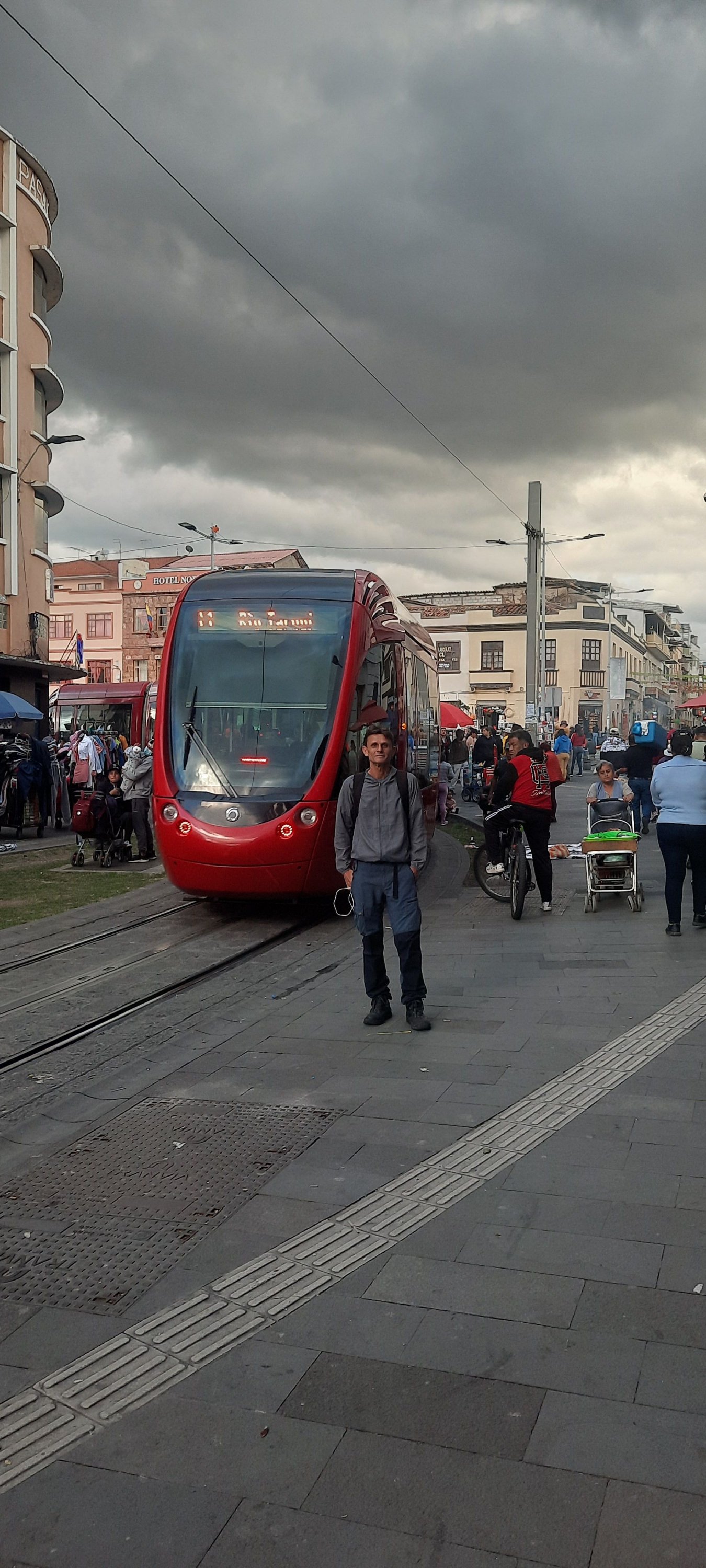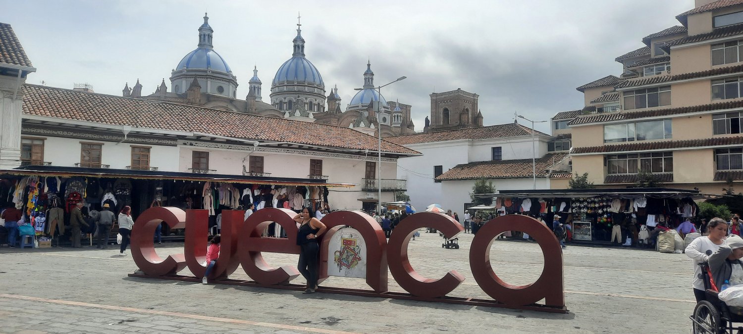 Numa pracinha , outras índias vendem as flores mais bonitas que eu já vi na vida, enquanto um homem vestido de cuy( porquinho da Índia) tenta nos vender uma foto com ele. Frutas, frangos pendurados, vendedores de todo tipo de comidas estranhas, tentam nos cooptar para sua barraquinha. Churros de queijo, amoras azedas, chapéus Panamá, que são do Equador. Bateram a América do Sul e jogaram em Cuenca . Cheiros, cores , ervas. E o trem? Haaaa o trem , esse ilustre veículo que vai cortando o centro histórico, dividindo espaço com gente, com carros, com vendedores de ilusões por um dólar. O trem carrega gente, carrega a gente , carrega a fama e o símbolo de uma das cidades mais vibrantes da América do Sul , patrimônio da humanidade , ela agora também nos pertence ou nós pertencemos a ela , porque mesmo voltando para a nossa vida pacata no interior de São Paulo, vamos sempre nos lembrarmos dos dias que aqui passamos e quando nos perguntarem qual a cidade mais bonita do nosso continente, ei-me de responder : CUENCA, a cidade do trenzinho.❤