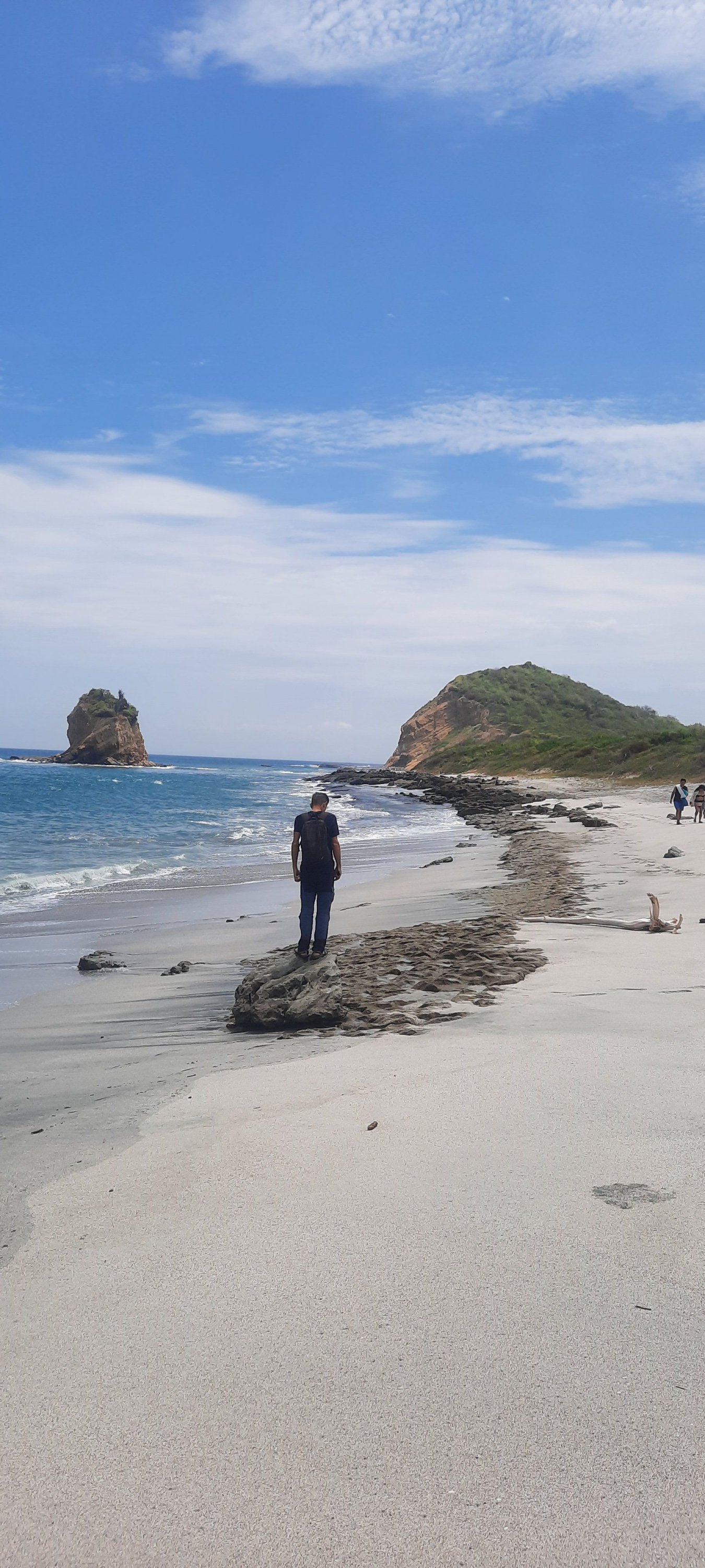 O calor está sufocante e quando chegamos ao final da PRAIA LOS FRAILES , abandonamos a areia e nos jogamos ao mar, um refresco e tanto. Águas quentes, mar azulado, mas praticamente não existe uma só árvore para se abrigar. Retomamos a trilha , que sobe um pouco até a saída para o mirante à esquerda , a qual ignoramos e passamos reto e continuamos por mais uns 10 minutos até tropeçarmos na PRAIA TORTUGUITA , silenciosa, selvagem e onde é proibido nadar por causa das correntezas perigosas. É um cenário deslumbrante e desconsertante, então lentamente caminhamos até seu final onde uma nova trilha nos leva em mais 15 ou 20 minutos até a PRAIA PRETA, onde mais uma vez, nos pinchamos para dentro do mar.