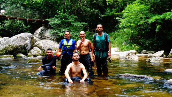 A subida do rio realmente não é complicada. Mas o esforço que se faz acaba por ir aos poucos minando a energia da gente. São várias as pequenas escaladas feitas com a água batendo de frente e logo notamos que o Anderson começava a definhar de vez, não porque fosse mais fraco que qualquer um de nós, mas porque havia mesmo escolhido mal os equipos e exagerado no peso. Eu e o Potenza começamos a monitorá-lo e já havíamos confabulado entre nós que se fosse preciso, dividiríamos um pouco da sua bagagem entre o resto do grupo.