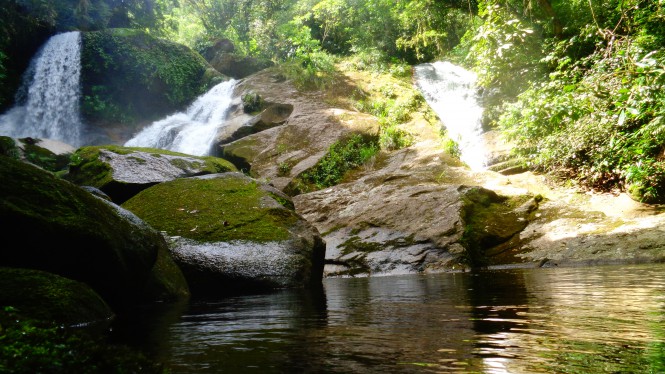 Aquele lugar era incrível, sentado ali naquela grande rocha plana aonde seria possível até montar uma barraca, fico a apreciar aqueles meninos felizes da vida se jogando cachoeira a baixo e mergulhando de cima de uma rocha oposta para dentro do poço, mas logo me esqueço de que já vou me encaminhando para quase meio século de vida, me levanto e despinguelo rio abaixo também e vou me juntar à criançada como quem vai brincar no jardim de infância.