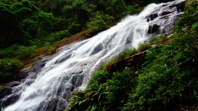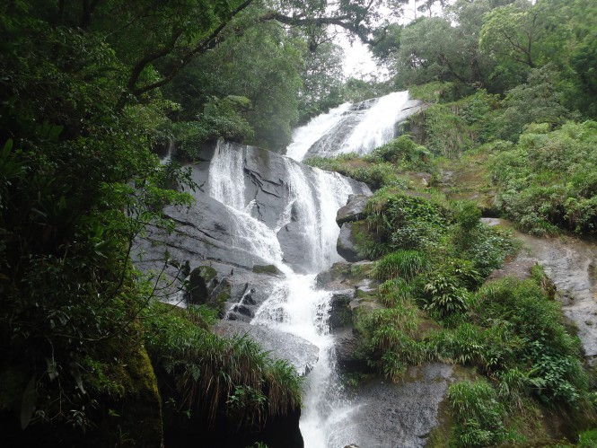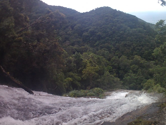 Sim , lá estava o monstro a despencar de uma parede colossal entre as árvores, que nos fechava parcialmente a visão. Sem querer, tínhamos avançado bem e agora, pelos cálculos do Trovo, poderíamos chegar à base dela em não mais de meia hora varando mato e interceptar novamente a vertente esquerda do rio.