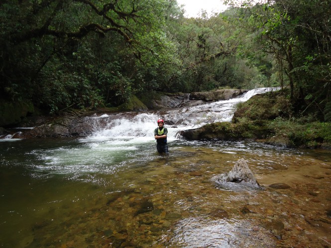 O Rio BRACINHO ganhou um nome ingrato por acharem ser ele um mero afluente, tributário menor do Rio São Lourencinho, que por sua vez era um importante afluente do Rio Juquiá, um grande rio da bacia do Ribeira do Iguape. O Bracinho se mostrou gigante, não só no seu comprimento, mas na sua importância dentro de uma região ainda inexplorada e selvagem, um vale até então totalmente desconhecido, no máximo arranhado em sua porção mais próximo à civilização. Quando resolvemos nos jogar na tal aventura, esperávamos encontrar um lugar selvagem, mas jamais poderíamos prever que esse rio se transformaria em um dos maiores achados de todos os tempos da Serra do Mar e o grupo que atravessou aquele vale, na sua maioria formado por senhores já de meia idade, saíram do outro lado com pelo menos uns 10 anos de idade a menos porque se entregaram ao deleite de voltarem a ser crianças para aproveitar esse grande parque de diversões natural. Para a geografia do Estado é mais um rio que foi acrescentado ao mapa e mesmo que passe muitos e muitos anos para que outro grupo resolva atravessá-lo, ele ainda figurará muito tempo longe das vistas destruidoras da raça humana, simplesmente pela sua dificuldade de acesso, como todos os outros rios que compõem o LADO ESCURO DA SERRA DO MAR PAULISTA.
