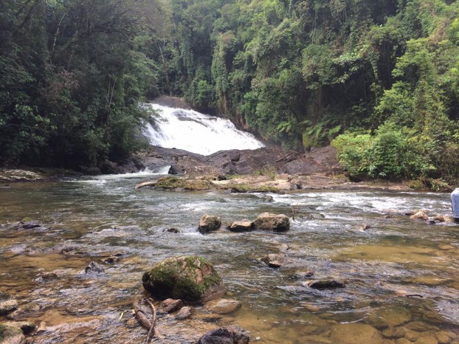 Durante todo o estudo do projeto eu havia cantado a bola de que aquele rio selvagem seria formado por águas incrivelmente cristalinas por nascer totalmente isolado dentro da floresta e por receber outros tantos de afluentes igualmente isolados, mas ver a materialização de todos os estudos se transformar em realidade é realmente gratificante. Logo de cara somos apresentados a um rio que mais parecia um espelho, não muito grande por ser apenas um dos grandes braços formadores, mas o sorriso no rosto de cada integrante daquela equipe traduzia o quão feliz estávamos e cada um demonstrava sua satisfação de um jeito, mas uma coisa não foi diferente, todos largaram suas mochilas quando o Trovo que, havia subido por 20 metros até uma curva, gritou que havia uma cachoeira linda um pouco mais acima. Era a primeira surpresa que o rio iria nos proporcionar durante os próximos 4 dias de expedição e aquela queda d’água foi o estopim para que a gente se unisse de vez, lavasse a alma, esquecesse os perrengues passado no acesso ao rio e tivéssemos a certeza de que a aventura agora estava pronta para começar.