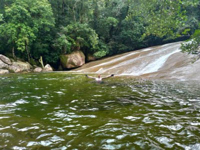 ja acampei na reserva dos indios de boracéia muita svezes, esse tobogã era nosso quintal durante dias, temos uma bombona de plastico enterrada ali proximo com nossos apetrechos de cozinha. gostava do poção q fica pra cima do tobogã, onde sentava em uma pedra e deixava apenas a cabeça de fora da agua e ficava curtindo o som da natureza em volta. a noite ouviamos sons diversos de animais q vinham nos curiar., ali perto tem uma arvore gigante que os indios derrubaram para tirar mel .