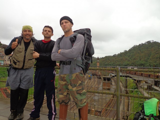 A chuva ia e voltava e às 15h30min chegamos à ponte da Grota Funda, a maior e mais impressionante de todas, onde estão as grandes caldeiras e todo tipo de maquinário impressionante. Da grota funda para frente às pontes estão em melhores condições, onde acaba sendo um pouco menos perigoso cruza-las. Cruzadas as outras pontes e outros túneis, finalmente às 17h00min, cruzamos pela placa que indica o início da Funicular. Passamos bem quietos pela placa e logo à frente junto a umas instalações da MRS, onde tem um grande reservatório de água, entramos para a direita depois de cruzar um pequeno riacho, que fomos acompanhando e ganhando um pouco de altura até chegar a uma pequena barragem, onde aproveitamos para nos lavar e colocarmos roupas limpas. Retrocedemos um pouco depois do banho e subimos por uma trilhinha à direita, que nos levou ao quintal de uma casa sem muros e logo nos desovou em uma rua de terra, onde bastou seguir para esquerda e assim adentramos na vila inglesa de Paranapiacaba, onde cruzamos a ponte sobre os trilhos, mas não sem antes tirarmos aquela foto clássica com a réplica do Big Bem. E foi assim que naquela noite fria de segunda-feira, com uma vila totalmente vazia, que abandonamos as bordas do planalto e voltamos para Rio Grande da Serra e depois cada um seguiu seu caminho e foi curar suas feridas em casa.