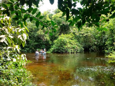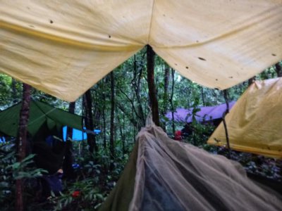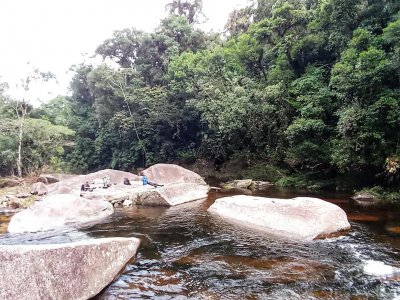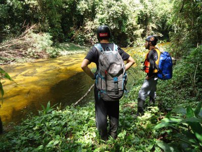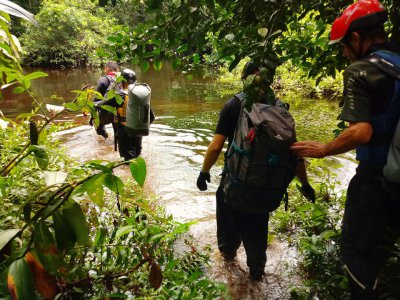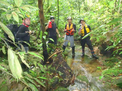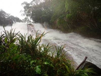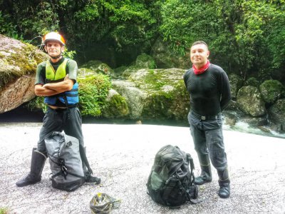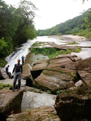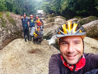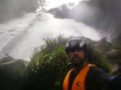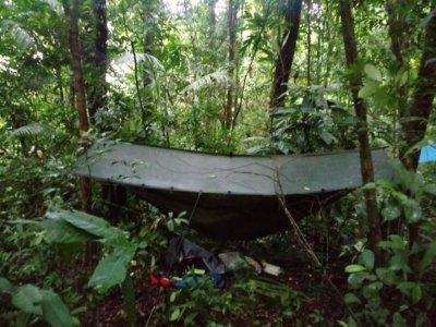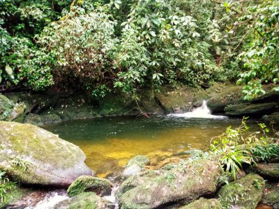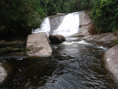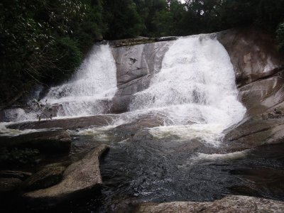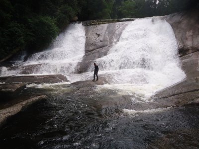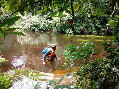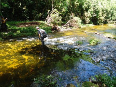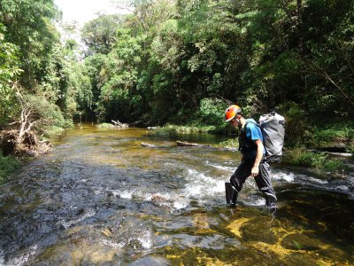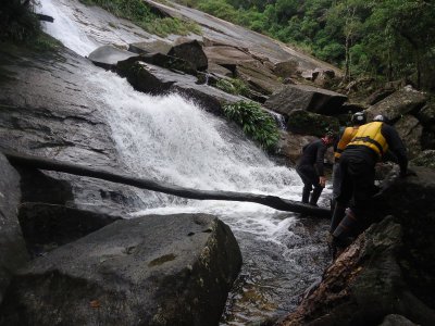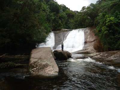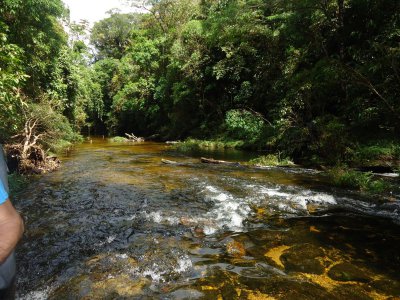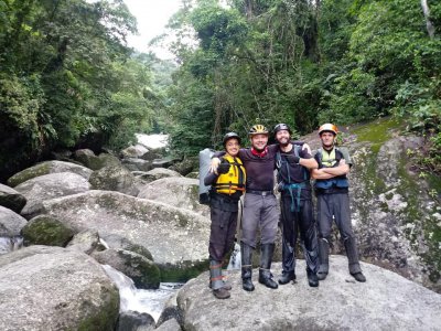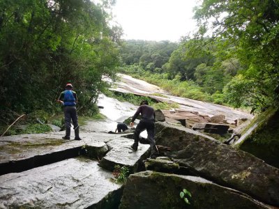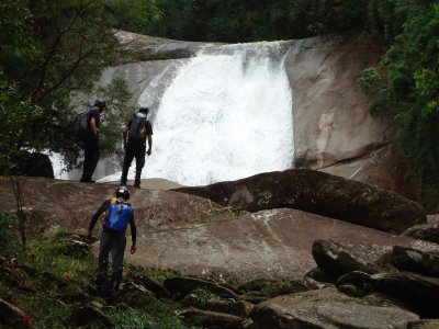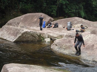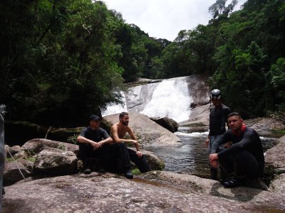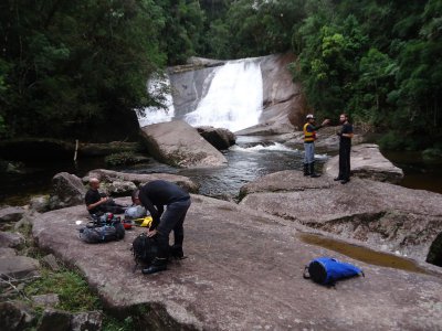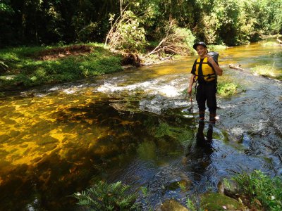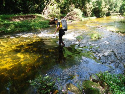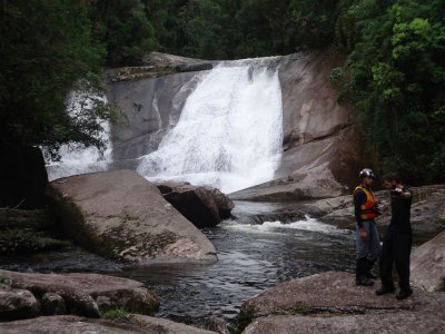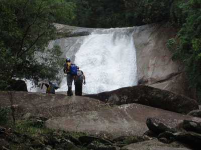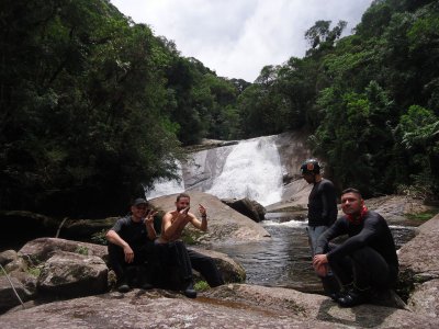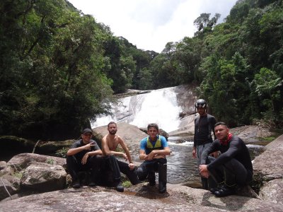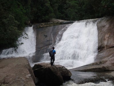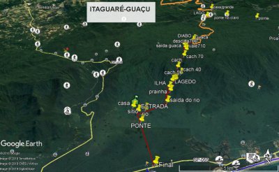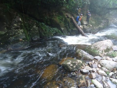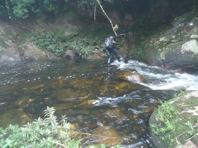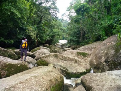 Essa travessia mesmo deste post é uma Expedição selvagem , uma travessia expedicionária, mesmo que tenhamos usado no começo, até a Cachoeira do DIABO , uma trilha antiga . Mas depois da Cachoeira do Diabo, a gente seguiu varando mato , abrindo floresta montanha acima e depois despencando por mais 2 ou 3 dias até a planície litorânea, por DENTRO do Rio Guaçu e por dentro do mangue , com água quase pelo pescoço.