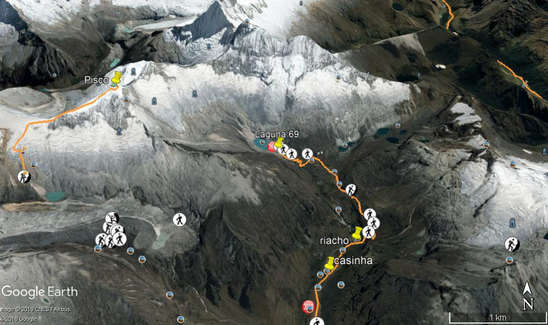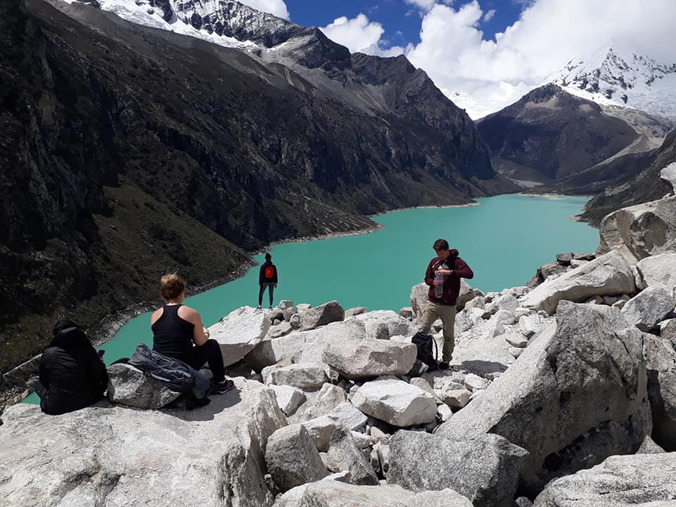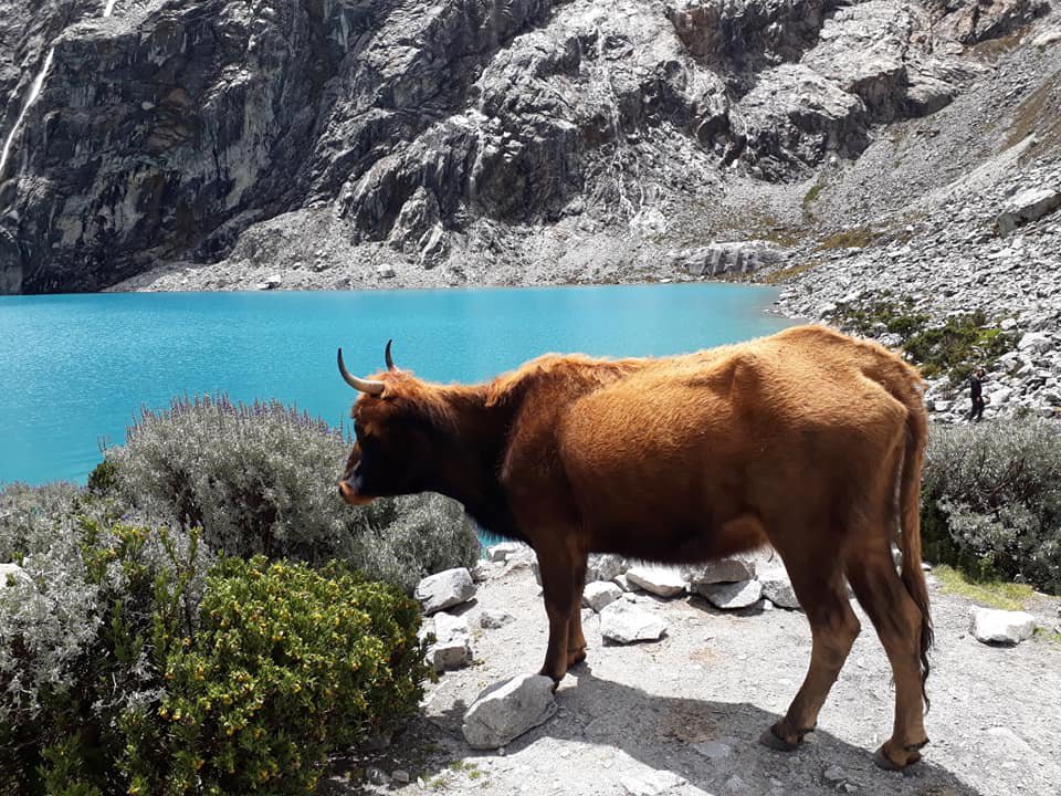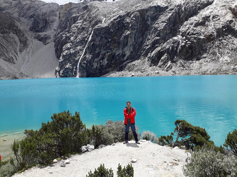 A cada passo, a cada metro ganho, nossa ansiedade vai aumentando. Sobre nossas cabeças agora localizo o que imagino ser a ponta do Nevado Pisco, montanha que já foi eleita a mais bonita do mundo, mas é um ângulo diferente e me concentro em botar meus olhos mesmo é na laguna, na esperança de vê-la ao longe. Nessa hora eu nem sei mais para onde foi parar o tal guia e pouco me importo em saber, já tenho a certeza que vamos chegar, muito porque o terreno se estabiliza e o sofrimento da subida já ficou para trás e é hora de encher os pulmões de ar ou o que conseguir, obviamente, e bater continência para uma das maiores atrações da América do Sul.