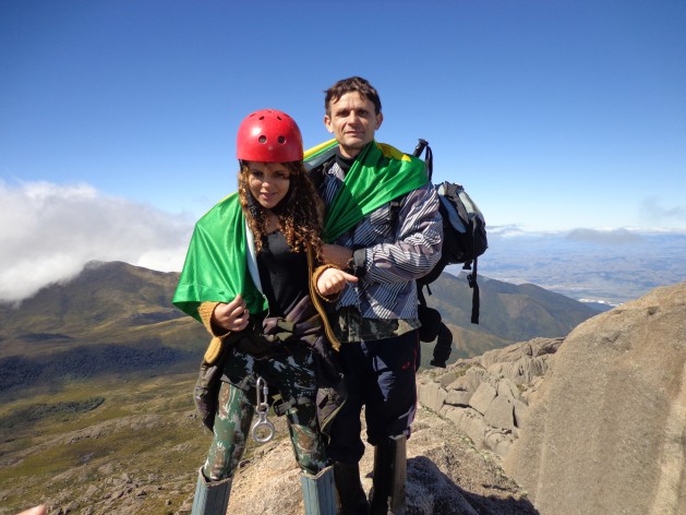 Os últimos metros são vencidos com extremo cuidado, pois há muitas fendas perigosas e todo cuidado é pouco. Nesse trecho consegui notar nos olhos da minha filha um certo medo, talvez por ser exposto de mais, ou talvez ela tenha sentido o poder avassalador do cume de uma montanha, a grandiosidade de uma das mais altas montanhas do país, o impressionante PICO DAS AGULHAS NEGRAS , 2.791 metros de altitude. No topo, nos abraçamos e tiramos uma foto clássica com a bandeira do Brasil ao nosso redor e de lá de cima, ficamos observando todas as outras montanhas do Parque Nacional aos nossos pés.