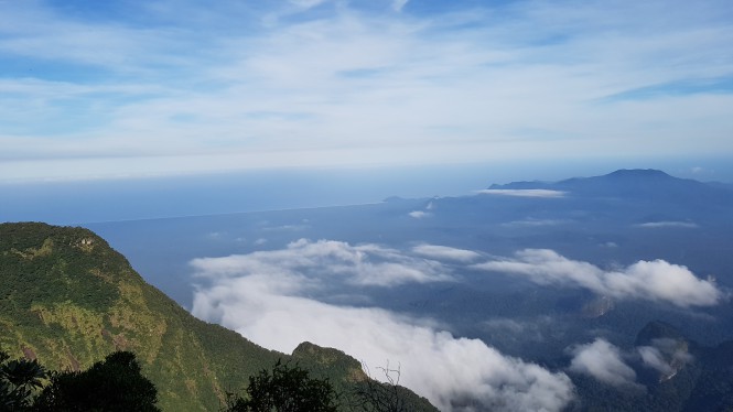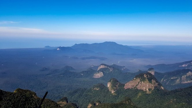 Ainda teríamos que auferir sua altitude, pelo menos uma altitude aproximada e bem próxima do real, mas antes era hora de ir atrás do bônus da conquista. O cume da serra incrivelmente fica bem nas bordas de uma parede de quase mil metros de desnível, sendo uns 500 ou 600 metros de uma parede de noventa graus de inclinação, em um dos maiores abismos colossais da Serra do Mar Paulista. E tudo isso a não mais que míseros dez metros do cume. Hora bolas, se conseguíssemos nos aproximar dessa parede vertical seria claro que poderíamos ter as vistas que buscávamos, então no enfiamos em direção as bordas do vazio, seguindo para o sul e quando chegamos lá, ninguém acreditou no que estava diante dos nossos olhos.