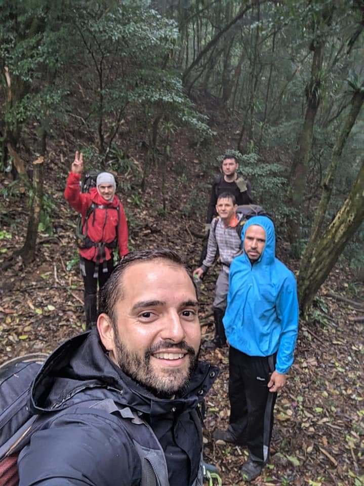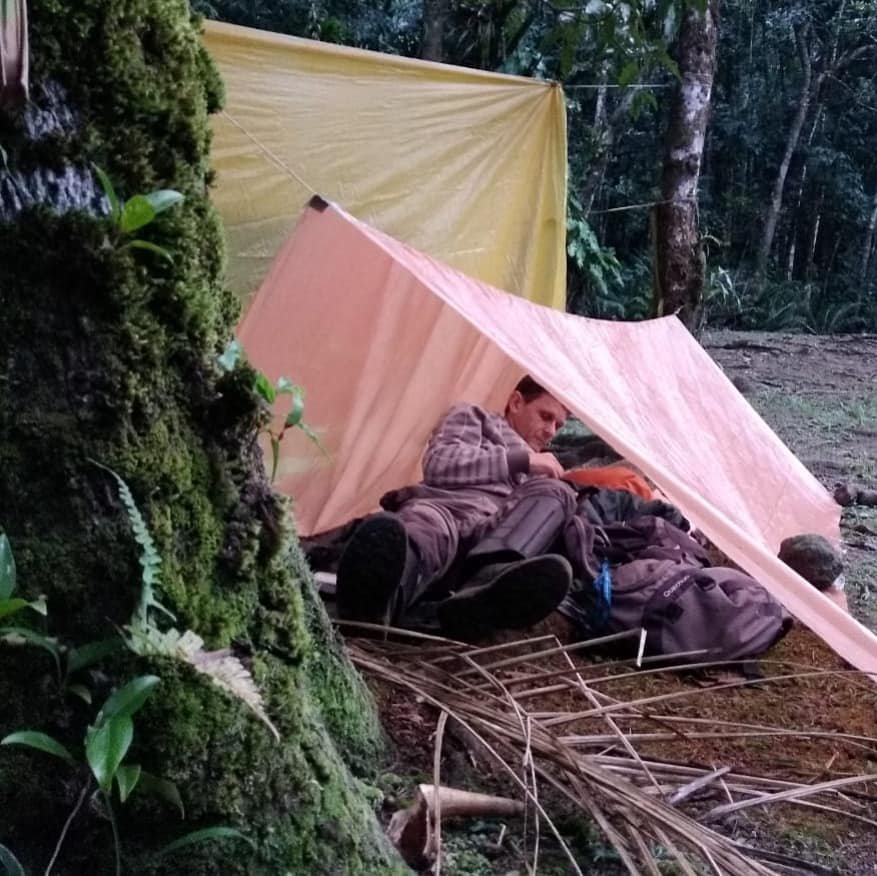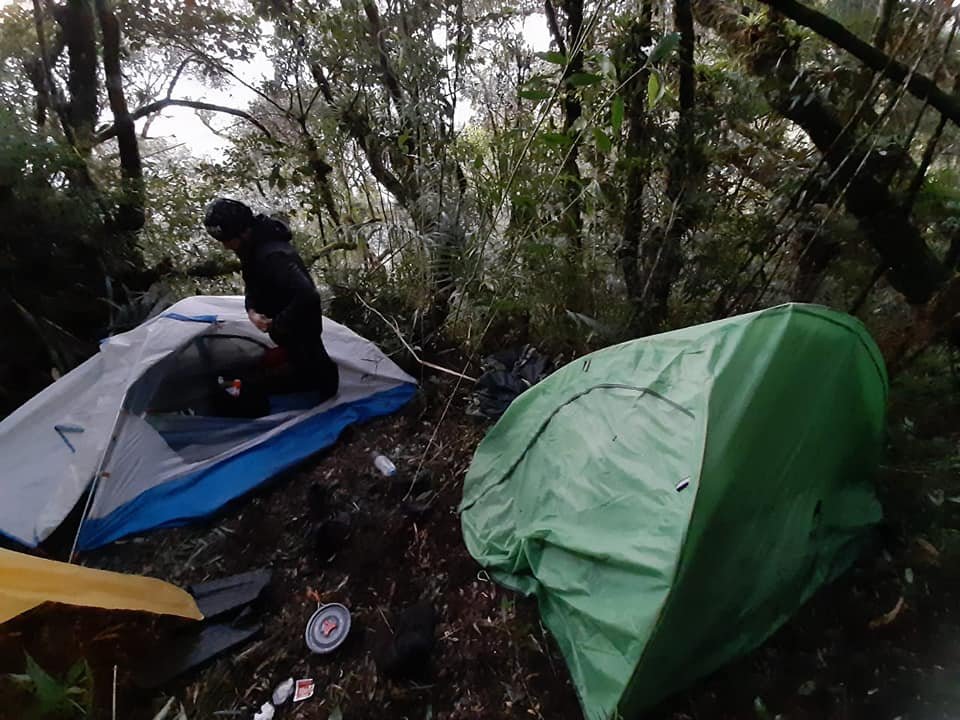 Por causa da densa neblina, a vegetação encharcou toda nossa roupa e alguns de nós já estava com muito frio e não via a hora de acampar, mas cada vez mais, nos enfiávamos em algum buraco, tentando localizar algo descende para passar a noite. Até achamos uma pedra que poderia nos dar um abrigo, mas uma urubu fêmea chocava um ovo embaixo dela e a todo momento nos dizia que não seria um bom negócio usar ali de casa. O desespero aumentou, já estávamos no nosso último bastão de energia e quando alguém gritou que iria ficar por ali mesmo, foi a deixa para os outros jogarem suas mochilas ao chão e dar por encerrado aquele dia de caminhada.