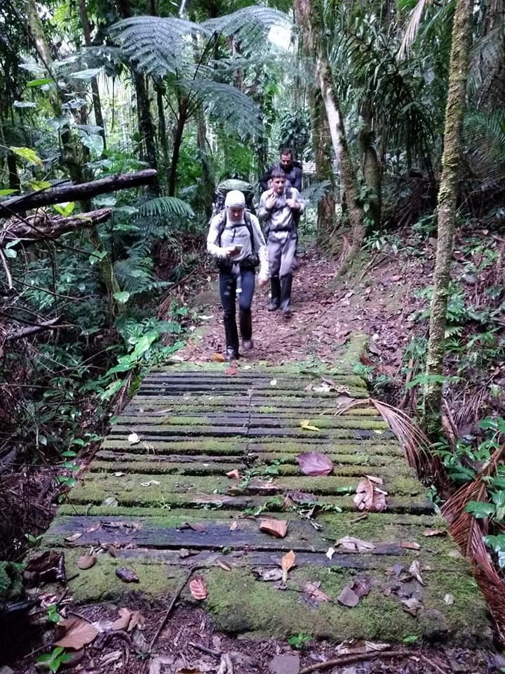 Era para ser uma travessia entre montanhas, uma caminhada selvagem até o topo desconhecido( Forquilha) ou quase nunca frequentado de uma montanha perdida no extremo norte de Ubatuba, mas o destino fez com que pudéssemos viver uma grande aventura, um encontro inusitado com esses maravilhosos povos da floresta, um choque cultural inusitado, não programado, até um pouco conturbado, mas encantadoramente surpreendente. Saímos dessa travessia inebriados pelo momento vivido, pela experiência adquirida, pelo novo amigo que ganhamos, o mesmo que nos fez torcer o nariz com uma mochilinha de escola, mas que surpreendeu com bom humor e competência. E essa aventura entra para o nosso vasto currículo de roubadas e perrengues memoráveis, numa busca incansável por fazer a vida valer a pena.