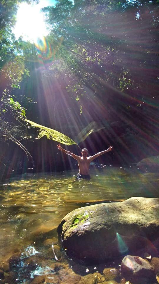 Aproveitamos o rio, não só para lavar a alma, mas também para nos livrarmos do barro impregnado nas nossas roupas, já que saímos dessa travessia só o farrapo humano. O caminho à frente nos reserva uma caminhada tranquila e como o sol estava bem quente, 40 minutos depois nos detemos em mais um rio para fazermos um lanche e em outros 40 minutos já adentrávamos no Povoado do Patrimônio, onde o pai do Tomaz nos esperava para nos dar uma carona salvadora de volta para Ubatuba.