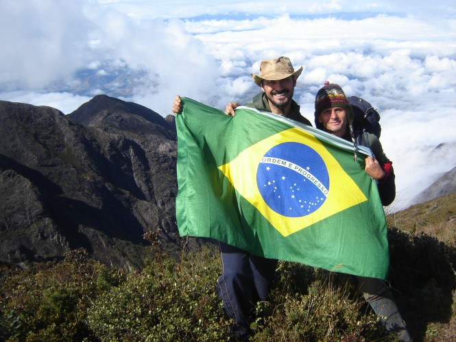 Juntos agora, seguimos rumo ao topo. Nas mãos carrego a bandeira do Brasil, para muitos um patriotismo idiota, mas par mim, é um gesto de respeito a essa grande montanha, a essa natureza exuberante. Em 2001 eu trouxe a bandeira da cidade que adotei para ser o meu lar e agora trago a bandeira do meu país. É a minha homenagem a essa montanha que já se tornou lendária, cobiçada por todos os amantes das montanhas. E foi assim que às 10h00min desse lindo dia de Junho, que fincamos os nossos pés no topo da PEDRA DA MINA (2.798 metros), o ponto mais alto de todo o Estado de São Paulo, o cume da Serra da Mantiqueirae a quarta montanha mais alta do Brasil.