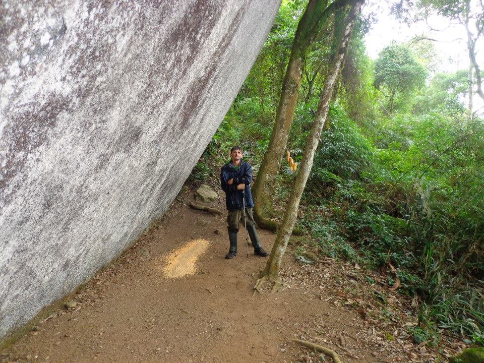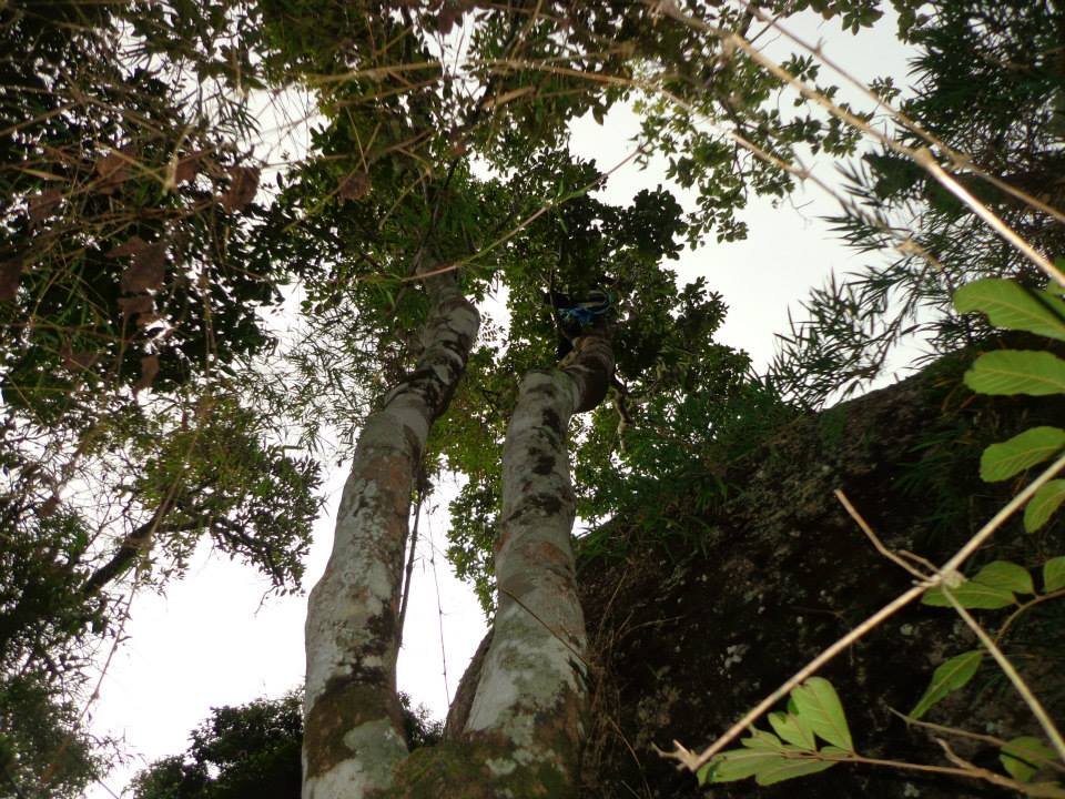 O avanço continuava muito lento. Bambus, cipós, vegetação rasteiras e outras tantas plantas espinhudas e grudentas iam minando as nossas forças, até que resolvi tirar da minha mochila o facão. Que pouco adiantou diante da secura da mata, onde os cipós secos não se deixavam cortar facilmente e faziam com que o trabalho se tornasse muito penoso. E além do mais, o meu bastão de caminhada, que havia abandonado para manusear o facão, começava a enroscar em tudo que era mato. Guardei de novo o facão e eu e o Dema fomos nos revezando no ofício de abrir caminho na raça, como desse e até usávamos os dentes para cortar cipós menores. Logo tropeçamos em mais um grande monólito e então resolvemos escalá-lo até o topo para ver em que direção seguíamos, já que não tínhamos a menor noção de onde estávamos.