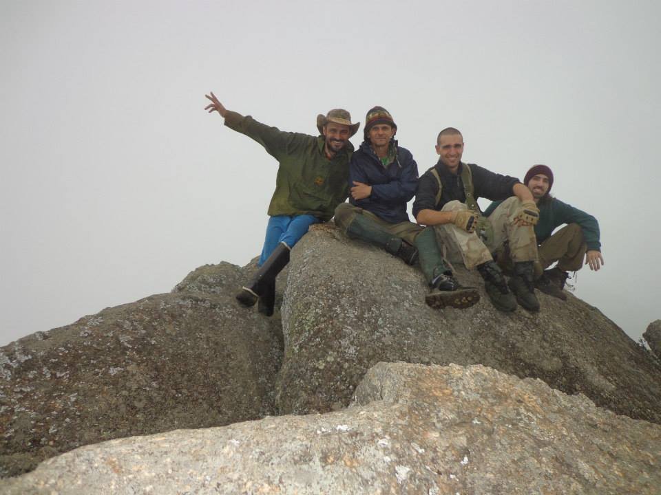 Contava o Alexandre, que um dia chegando à uma área de camping, chamou pelos campistas que estavam dentro da barraca e ouviu a seguinte resposta: “-Em nome de Jesus, quem tá aí ? Vocês não estão armados não né ? Pelo amor de Deus, não faz nada com a gente !”. Ao lembrarmo-nos desta história eu e o Dema caímos na gargalhada. Abrimos a barraca e vimos dois caminhantes de primeira viagem que pareciam recém-chegados de Woodstock. Levantamo-nos e fomos auxiliá-los na montagem da barraca e na preparação do rango. Rafael e Silvio nos pareceu umas figuraça e como os meninos eram “ marinheiros” de primeira viagem, os convidamos para que subissem conosco pelo menos até o Pico do Lopo na manhã seguinte.
