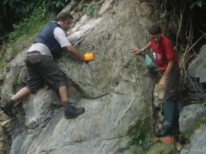 O Poço do Quilombo é outro lugar irresistível, não dá para passar por ele e não se jogar na água. Estávamos lá dando altos pulos, quando vimos um helicóptero da Policia Militar começar a dar rasantes por cima de nós. Voltamos a ficar tensos e apreensivos, poderia ser a fiscalização atrás de intrusos na área do Parque Estadual da Serra do Mar, ou seja, nós. O bicho ficou feio quando o pássaro de aço resolveu pousar junto ao poço. Ficou a uns 10 metros do chão e de dentro do helicóptero desceu 2 homens armados até os dentes. Aquela minha dor de barriga, voltou com tudo. Pensei: ”Agora a gente não escapa”. Logo vimos um grupo de resgate que veio por terra e passou a passos rápidos por nós e então ficamos sabendo que eles estavam atrás de uma pessoa que havia se perdido junto à Pedra Lisa e havia feito contato por celular. Voltamos a ficar aliviados.