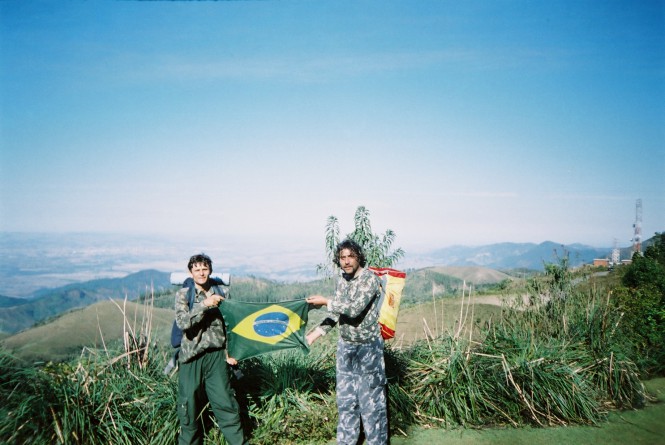 Caminhei os próximos minutos na trilha, quase sem sentir os pés tocar o chão, estava inebriado, não sabia se ria ou se chorava. Ri e chorei, chorei copiosamente, escondendo as lágrimas atrás dos meus olhos de acrílico. Em menos de uma hora, cruzamos uma porteira e a trilha nos cuspiu para fora da mata e nos lançou a um degrau na montanha. Ventava tanto que era quase impossível ficarmos em pé. A vista era com certeza a mais bonita da caminhada até agora. Dali já avistávamos o Pico do Itapeva e toda a extensão da Serra da Mantiqueira com seus enormes picos beirando os 2800 metros. Depois de um breve descanso, adentramos em um reflorestamento e logo depois já caminhávamos com a ilustre presença das araucárias. Finalmente chegamos a uma rústica habitação e pudemos enfim nos afogar de tanto beber água, cedida gentilmente por um caboclo habitante desta região. Ele também nos serviu um revigorante café e algumas bananas. Despedimo-nos deste novo amigo e em vinte minutos já estávamos com a rampa de acesso ao Pico do Itapeva sob os nossos pés.