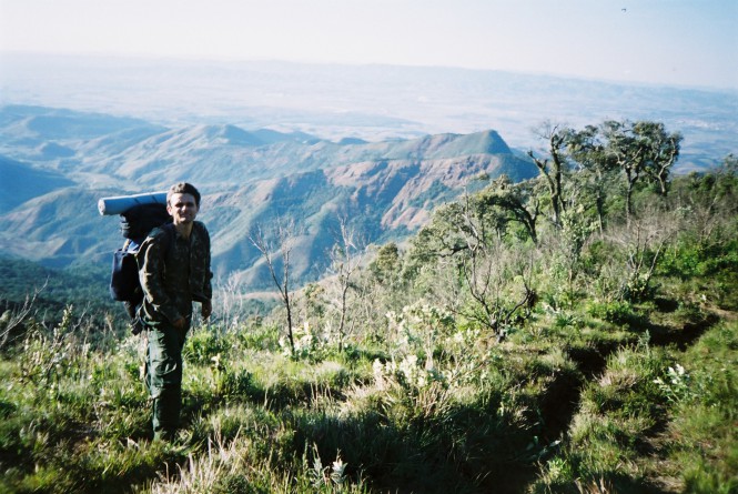O sol já ameaçava se jogar atrás da serra, e nós ali parados no meio de lugar algum, sem um centímetro plano e limpo para acampar. Escalei uma das árvores para melhor avaliar nossa posição. Estava cansado e com algumas dores pelo corpo, e dali de onde estava a melhor solução seria mesmo continuar seguindo em frente, até tentar alcançar a mata logo abaixo, pelo menos lá teríamos como achar algum lugar que desse para montar uma barraca. A decisão que tomamos se mostrou logo acertada e em menos de meia hora estávamos caminhando dentro da mata, até que avistamos ao longe o que parecia ser o telhado de alguma habitação perdida por estas paragens. Chegando ao local vimos que se tratava apenas de caixas para apicultura. E em mais um minuto desembocamos no que deveria ser no passado, uma estradinha, que hoje não passava de uma mera trilha um pouco mais larga.