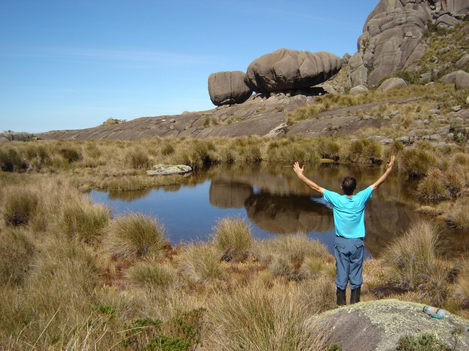 Vista de cima, a Pedra da Tartaruga mais parece uma pitanga e a nordeste, vê-se o Morro do Couto que com 2.685 metros. É um dos mais altos do Parque. Nossa vontade era de ficar ali por horas, mas a travessia tem de continuar. Então tratamos logo de descer em passos acelerados, mas sempre tomando cuidado com as perigosas fendas. Passada as partes perigosas e já aos pés das Prateleiras, eu e o Jony nos lançamos numa corrida montanha abaixo, saltando de pedra em pedra em uma jornada quase que suicida e em poucos minutos demos nosso último salto e nos reencontramos com o nossos amigos, Fábio e Vera, que já nos esperavam com um “animado” cochilo à beira da trilha.
