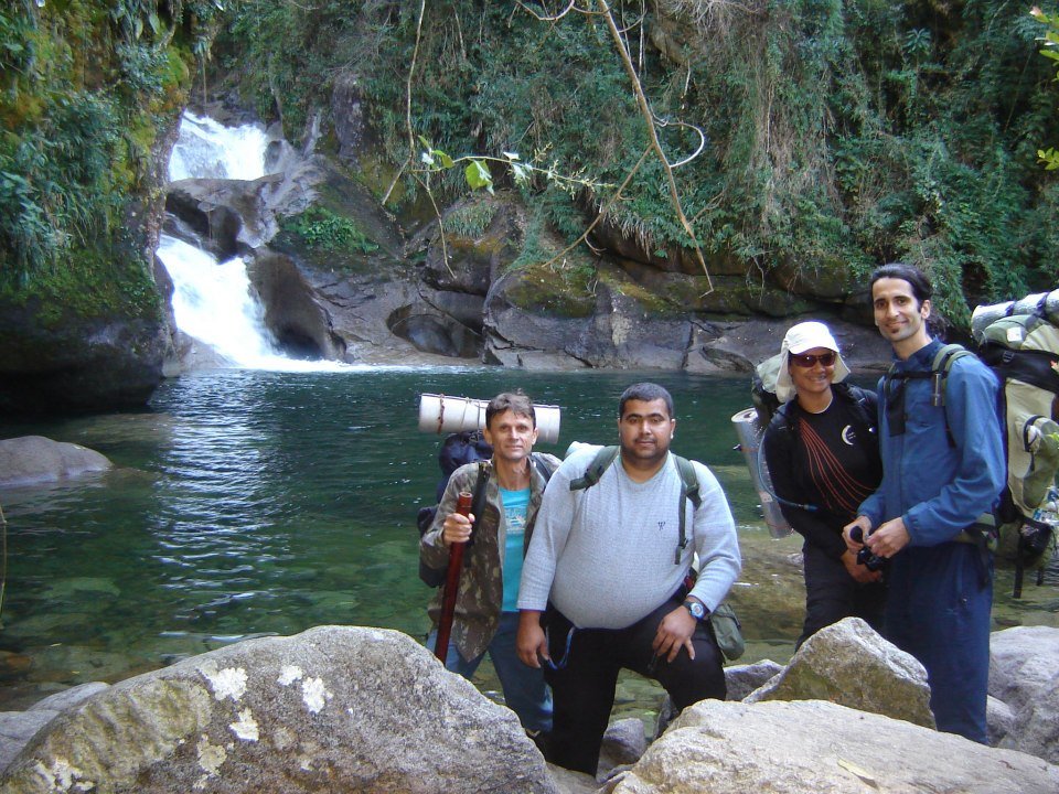 Às 05 da manhã encosta o ônibus para Itatiaia-RJ e às 07 horas já estávamos embarcando para o Parque Nacional no ônibus que sai bem enfrente a sua igreja principal. O ônibus vai em direção à serra e em 40 minutos pára na primeira guarita do Parque Nacional de Itatiaia. Logo sobe um funcionário do parque e avisa que se tiver alguém que vai entrar no parque como turista terá que descer e pagar as devidas taxas. Só havia nós de turistas, os outros eram todos funcionários e trabalhadores das pousadas e hotéis que funcionam dentro da Unidade de Conservação. Sendo tratados com uma educação de jagunço com cólica de rin, preenchemos os documentos burocráticos do parque e carimbamos nossa autorização para as duas travessias, primeiro a Rui Braga e depois a Rebouças-Mauá e também pagamos as taxas de 22 reais pelos três dias de caminhada. Voltamos para o coletivo, que subiu por mais uns 15 minutos e nos deixou a 1 km da entrada da trilha. Jogamos as mochilas nas costas e subimos até o grande Poço da Maromba, onde a estrada acaba junto a mais uma guarita, e novamente temos que apresentar a autorização. Antes de partimos definitivamente trilha acima, resolvemos conhecer o poção e tomar um café. O local tem uma das águas mais limpas e cristalinas de toda a região, mas nem isso foi suficiente para evitar que a Vera torcesse o nariz, quando viu que usaríamos a água do poção para fazermos o café. E foi aí que conclui que a menina jamais tivera em contato com os meios naturais, tava na cara que ela era totalmente urbana e a partir daí eu já sabia que teria que ter muita paciência com ela. A nossa companheira de caminhada entraria em um mundo novo, totalmente desconhecido para ela, mas isso nunca me preocupou, pois eu já estava acostumado com novatos nas trilhas. Todos nós já fomos novatos um dia e é sempre um prazer apresentar o mundo das montanhas e das caminhadas para os amigos.