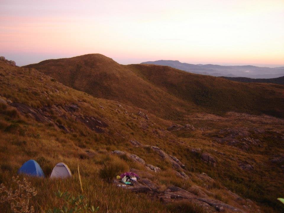 Nossa janta seria improvisada. Em uma panela de água juntei um pacotinho de arroz que havia sobrado do dia anterior e estava em ótimo estado, coloquei dois pacotes de macarrão instantâneo, dois pacotes de feijão pronto, uma cebola picada, meu tempero especial, dois dentes de alho e para finalizar, um pacote de molho quatro queijos. Jantamos e nos “pinchamos” para dentro da barraca. Foi nessa hora que começamos a ouvir os soluços da Vera. A Vera entrou em pânico. Era a primeira vez que ela dormirá em uma barraca e pior, perdida em algum lugar entre a Pedra do Altar e o Vale do Aiuruoca, ou seja, em um mundo hostil e perigoso, pelo menos na visão dela. Mais a coisa ficou feia e a menina entrou mesmo em choque. O Jony a todo instante tentava acalma-la. Não havia mesmo mais o que fazer. Estávamos longe de tudo, não havia outro socorro e então tivemos que apelar para o super rivotril, o amigo para as horas difíceis. Ela tomou o calmante e apagou e no outro dia acordou renovada. Ela sobreviveu. Quando perguntamos do que ela tinha medo, ela nos contou que o medo era da montanha. Ter medo da montanha é o primeiro passo para uma vida longa como montanhista (rsrsrsrsrsr).