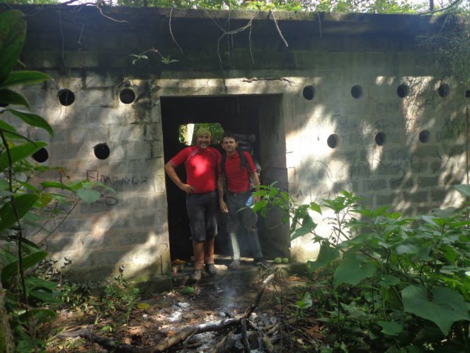 O Lindolfo montou sua rede em dois buracos na parede e não quis saber de mais nada e eu quase ia seguindo pelo mesmo caminho, quando o Eduardo voltou de uma moita e disse que era uma pena que os mamões que ele havia encontrado estavam verdes. Opa! Mamão verde? Isso é uma iguaria meu amigo, respondi. O Eduardo então resolveu usar o óleo diesel que ele havia carregado por dois dias para fazer uma fogueira com a madeira seca que havia sido deixado ali estrategicamente. Descasquei o mamão, piquei e juntando- o com alho e cebola pus tudo para cozinhar e depois acrescentei pimenta e um molho para estrogonofe com champion. Até o Lindolfo que já estava desfalecido, ressuscitou para o jantar de gala. Eu e o Eduardo aproveitamos a fogueira para secar parte das nossas coisas e quando o fogo se extinguiu, peguei meu saco de dormir e o isolante do Eduardo e fui “morrer” em um dos cômodos do nosso castelo.