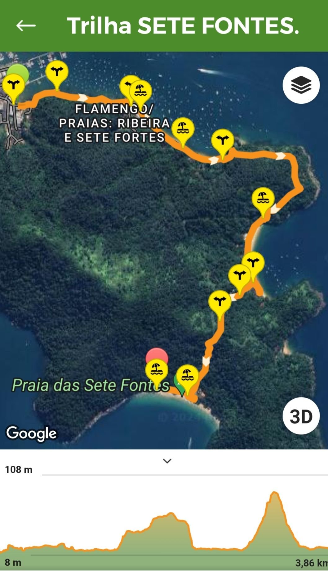 A Praia do Flamengo é uma praia bem extensa e igualmente a Ribeira, também tem águas calmas e transparentes e como não me lembrava mais de onde partia a trilha que nos levaria a próxima praia, simplesmente acabamos passando reto e fomos até o seu final , tendo que retornar até uma placa junto a um bar.