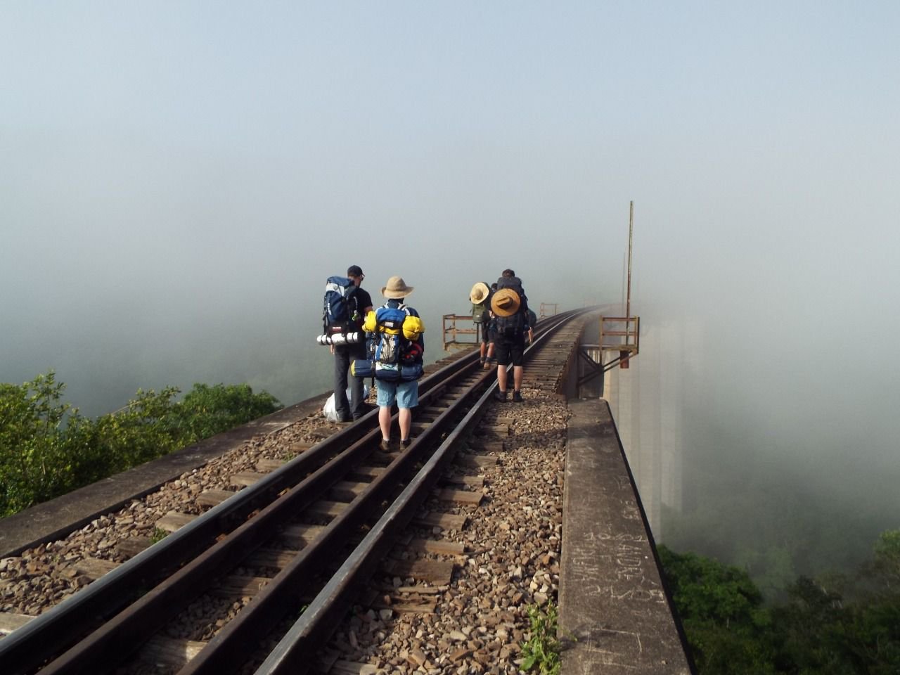 Pegamos uma neblina no início do viaduto aonde tiramos algumas fotos . Do viaduto pesseguinho até o viaduto v 13 teríamos uns 13 km de caminhada .