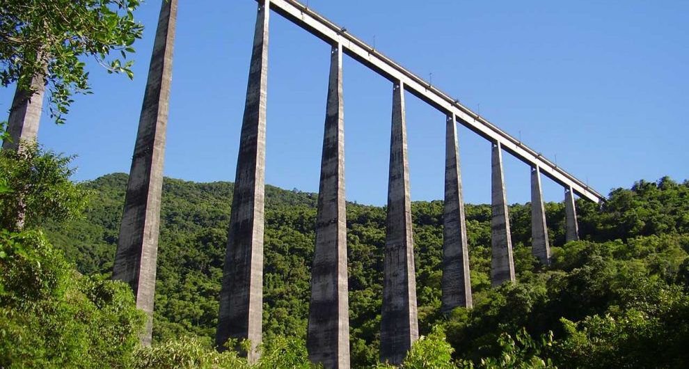 O Viaduto pesseguinho tem 268 metros de extensão requer muita atenção e habilidade, sob uma altura de 87,8 metros.