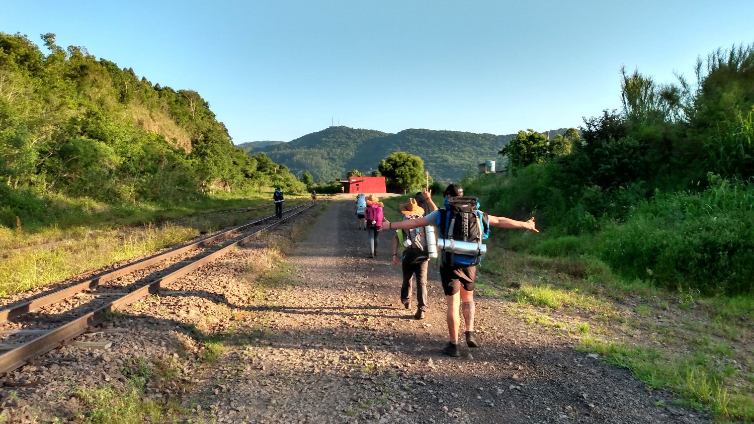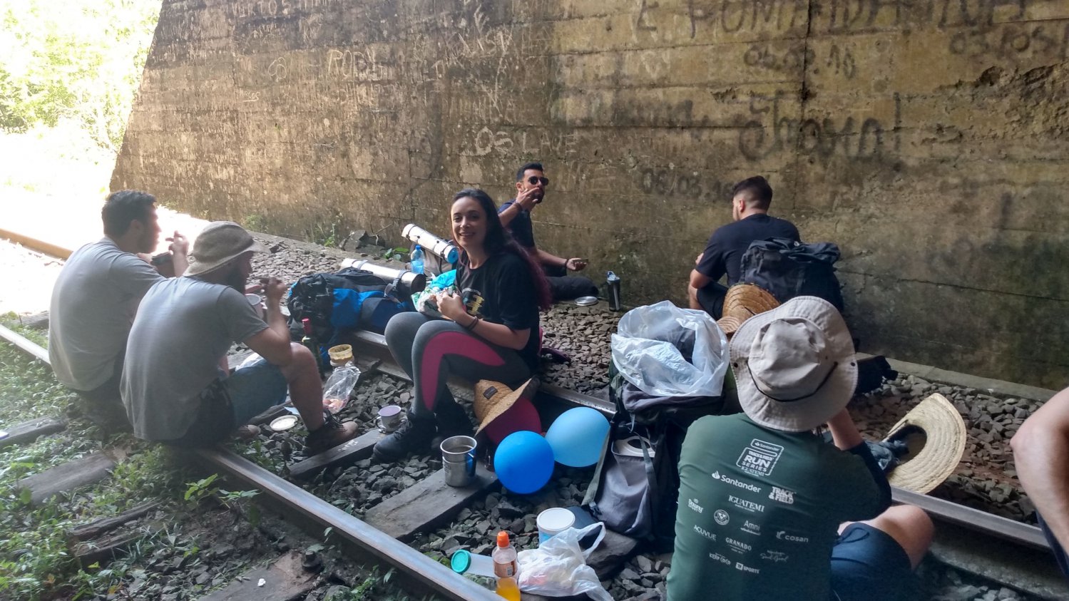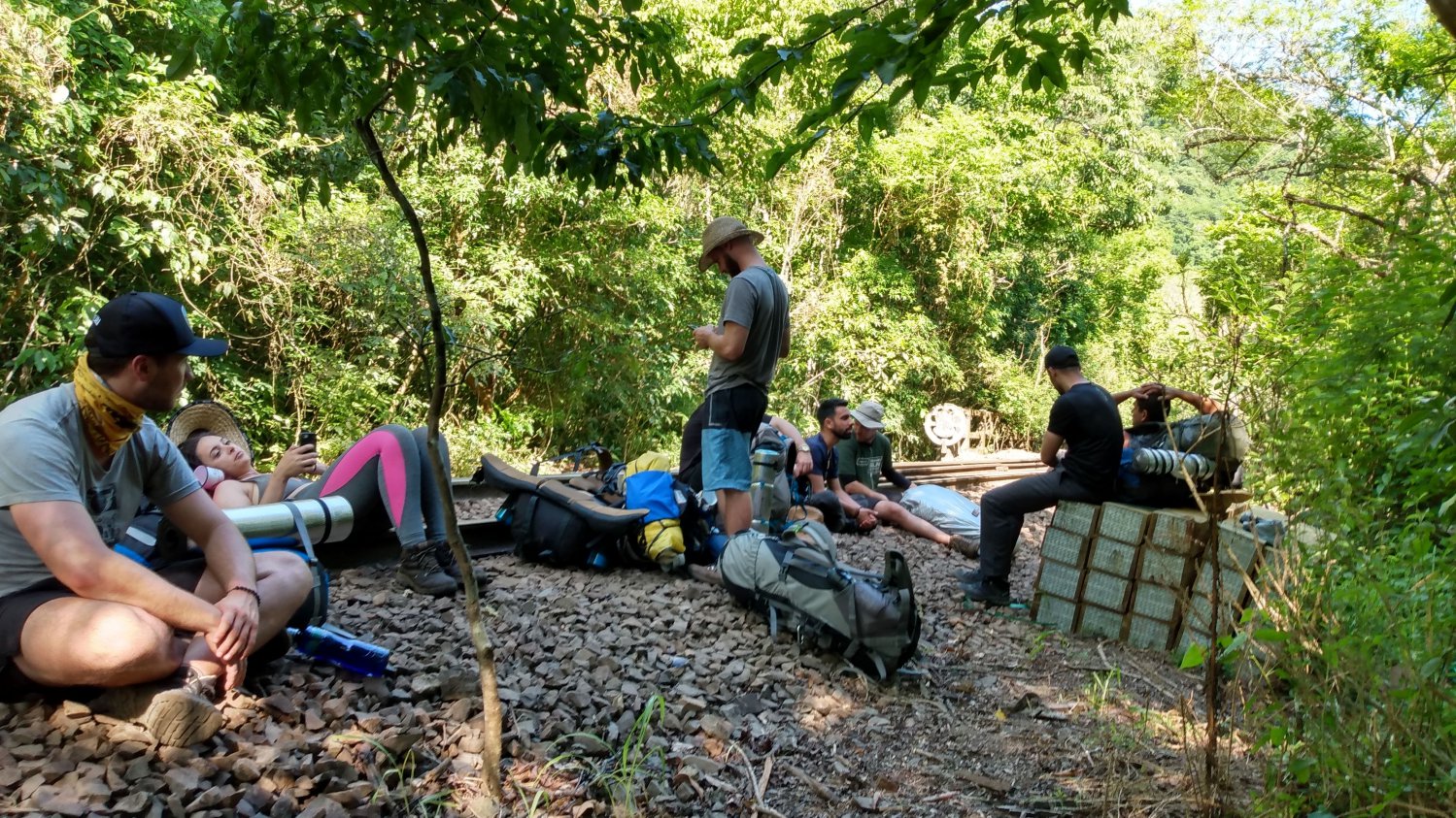 Aqui começamos a sentir o cansaço , dores nos pés devido o cascalho e dores no ombros mais todo suportável , o cansaço era mais devido ao sol que estava muito forte como a travessia tem um terreno aberto nos trilhos o sol é constante , só quando chegamos nós túneis que conseguindo escapar dele .