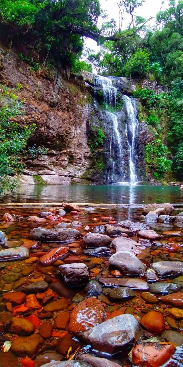 Uma trilha que passa por baixo do viaduto que leva a uma cachoeira linda e gelada