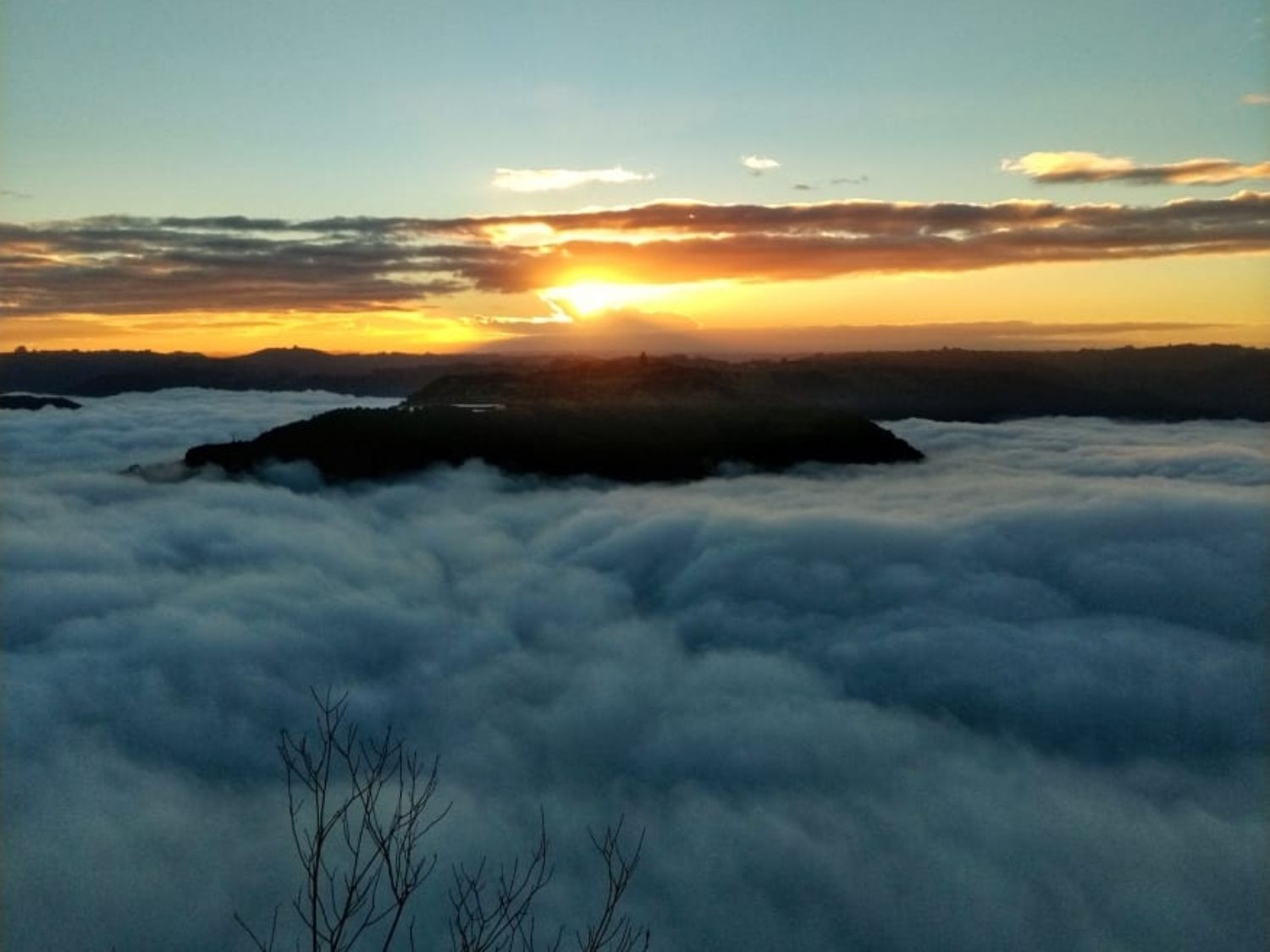 Fomos eu e o Thiago Lazzari acampar no Monte Claro que fica em Veranópolis .