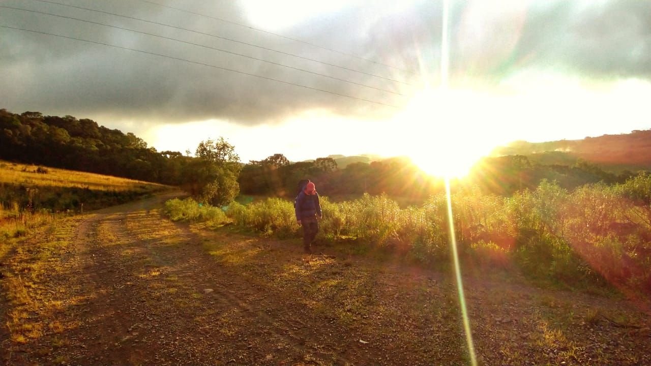 Deixamos o carro perto da porteira e iniciamos nossa trilha até o outro lado , atravessamos uma plantação de Pinheiros até chegar no rio que corre pelo cânion , seria o lugar mais acessível para passarmos para o outro lado . Atravessamos o rio passamos por algumas cercas e plantações ate chegar do outro lado aonde havia uma trilha das vacas que nos levaria até a ponta do cânion .