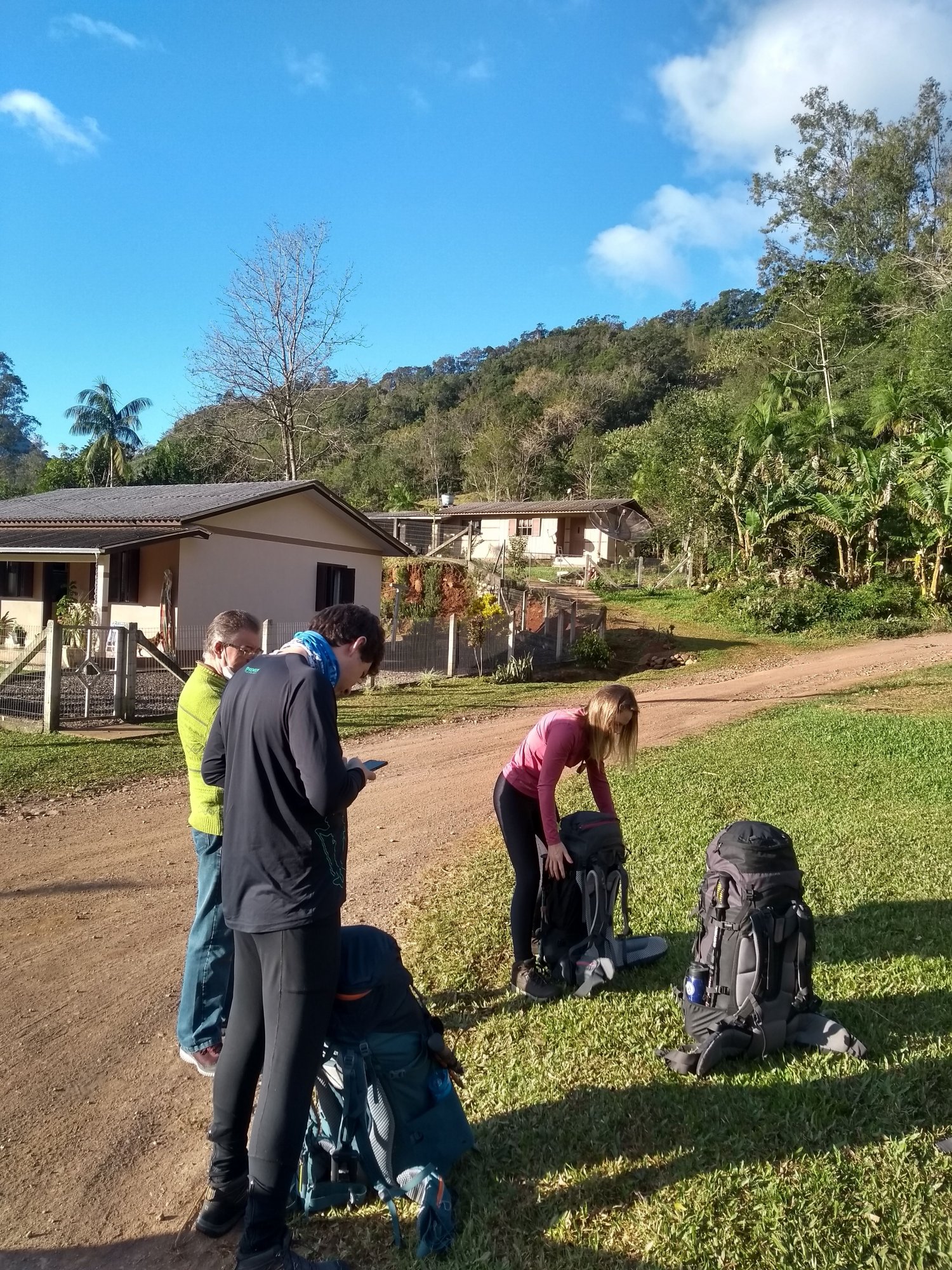 vamos lá então , tudo organizado algumas dúvidas pra serem descobertas na prática e partimos . Eu e o Thiago lazarri saímos de Caxias pela madrugada de sexta pra sábado em direção a curumim aonde já estava o Cássio Corteze e a Fabiane Sganzerla , fomos até a casa do pai do Cássio aonde nós encontraríamos e dali iríamos até Morrinhos do Sul a onde começa nossa travessia .
