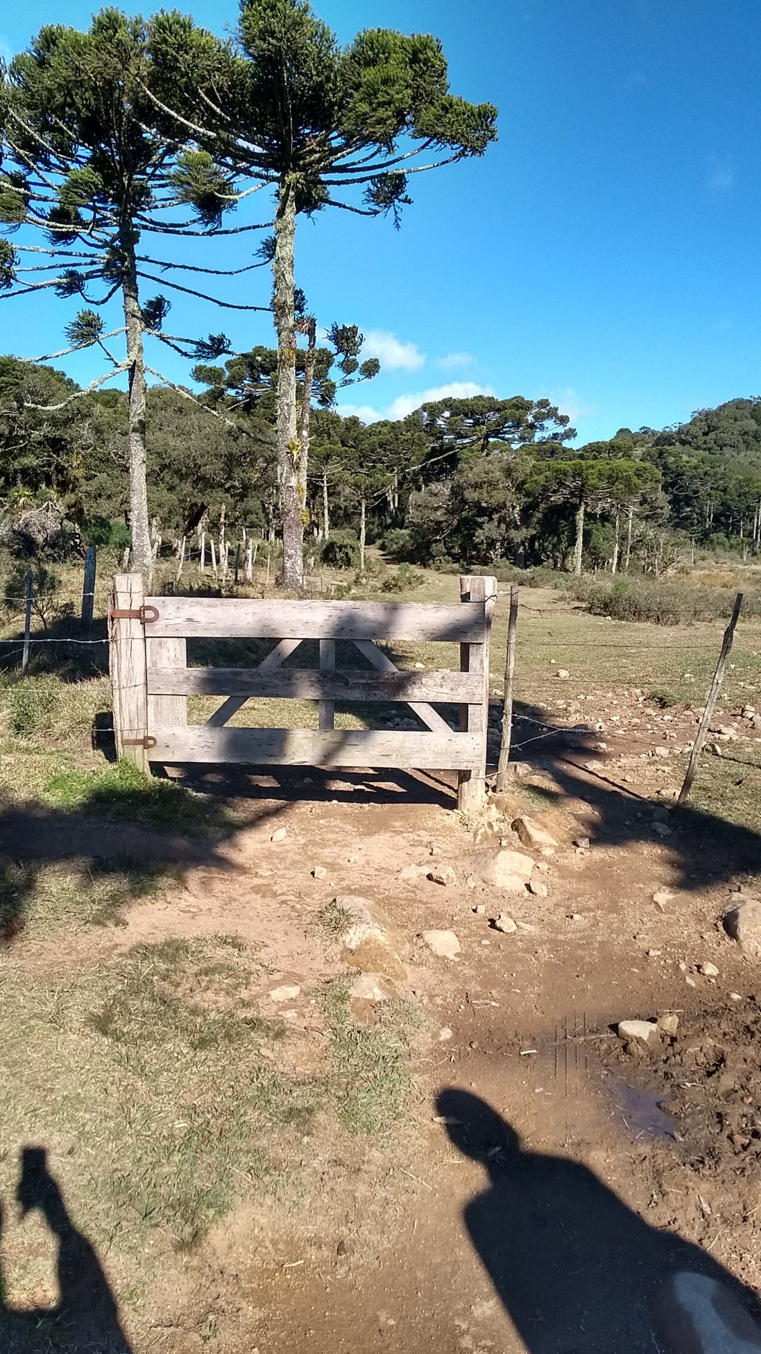 Nessa porteira do lado esquerdo a estrada se entra pra ir para as cumeeiras , caminha por uma estrada até uma boa parte , depois entra no campo e na trilha .
