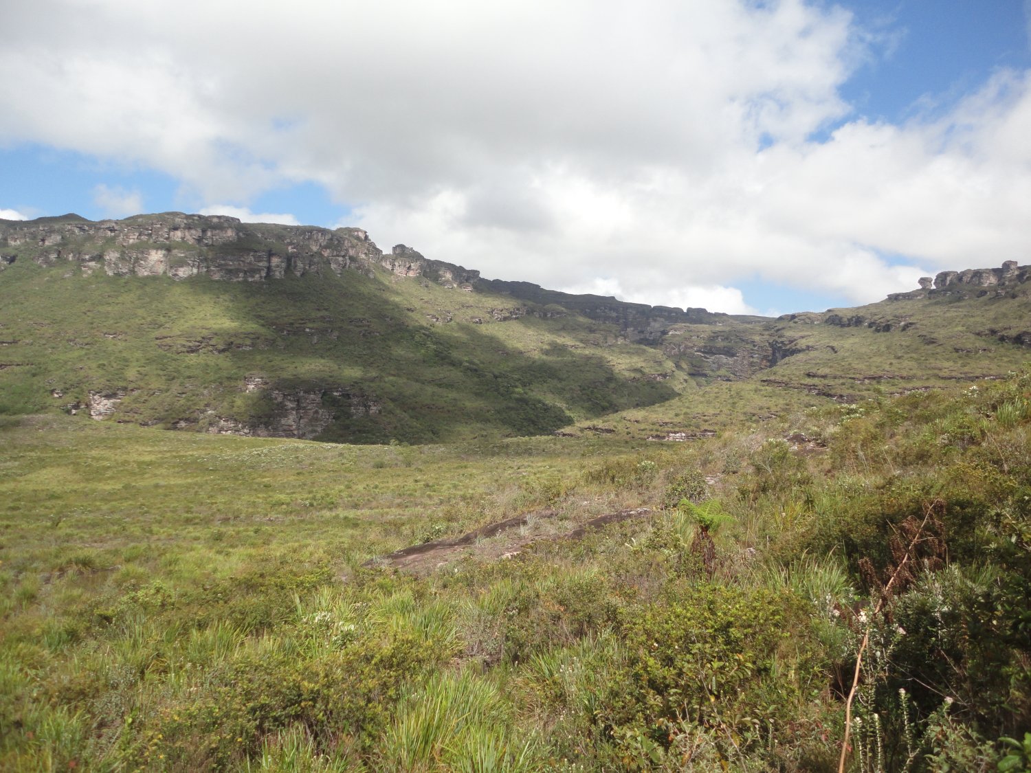 Vencemos o trecho do Córrego Verde em pouco menos de uma hora. É fantástico, você sai de um trecho de elfos e gnomos, onde a luz que chega é pouca e filtrada pelas copas das árvores, a um lugar aberto, alto, de onde se pode observar o vale de onde viemos, bem como todo o relevo em volta: este é o início dos Gerais da Fumaça.