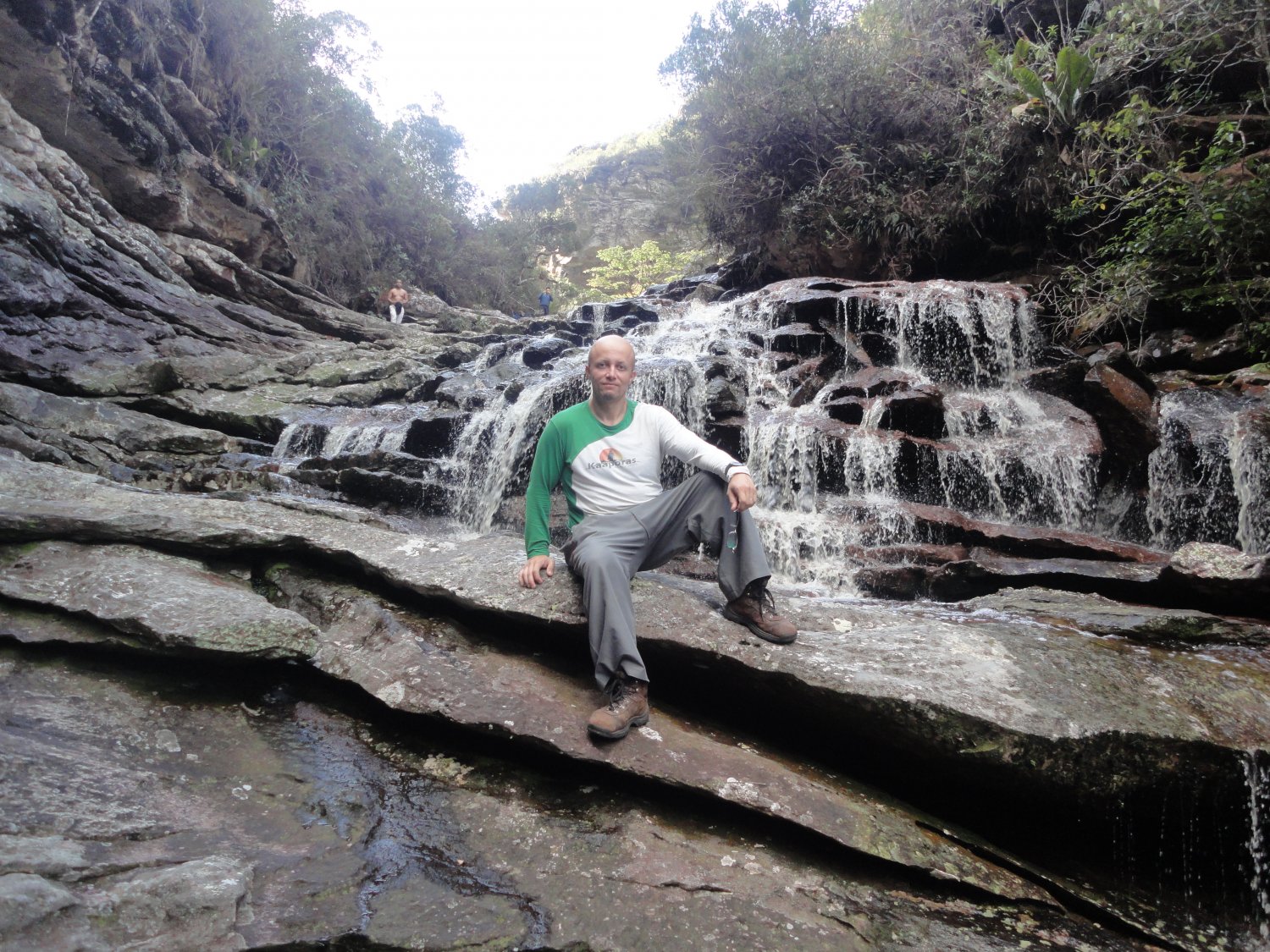 Eduardo Borges com a Cachoeira do Fundão aos seus pés!