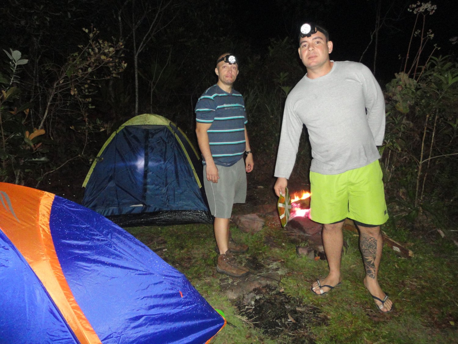 Eduardo e Nielson na noite do dia 18/08/2012, no camping entre a Cachoeira do Fundão e a Cachoeira do 21. Bom citar que este acampamento fica à direita de quem sobe o rio.