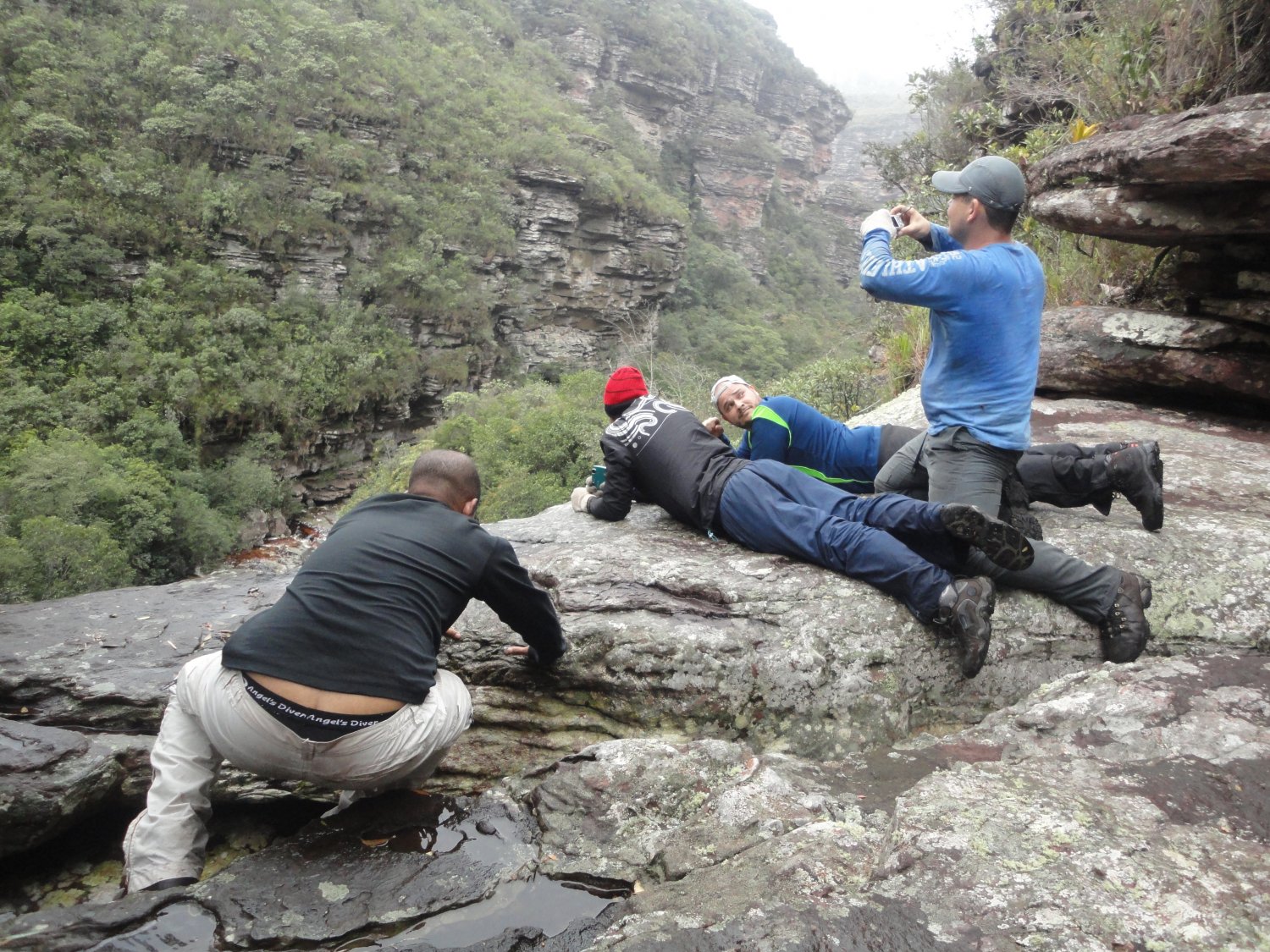 Green, Dilmar, Márcio e Nielson em cima da cachoeira do 21!