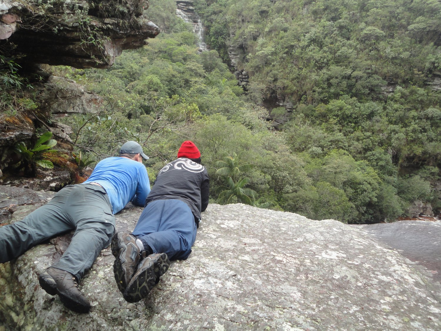 Nielson e Dilmar no topo do 21, avistando a cachoeira lateral que deságua no 21, logo após o poço!