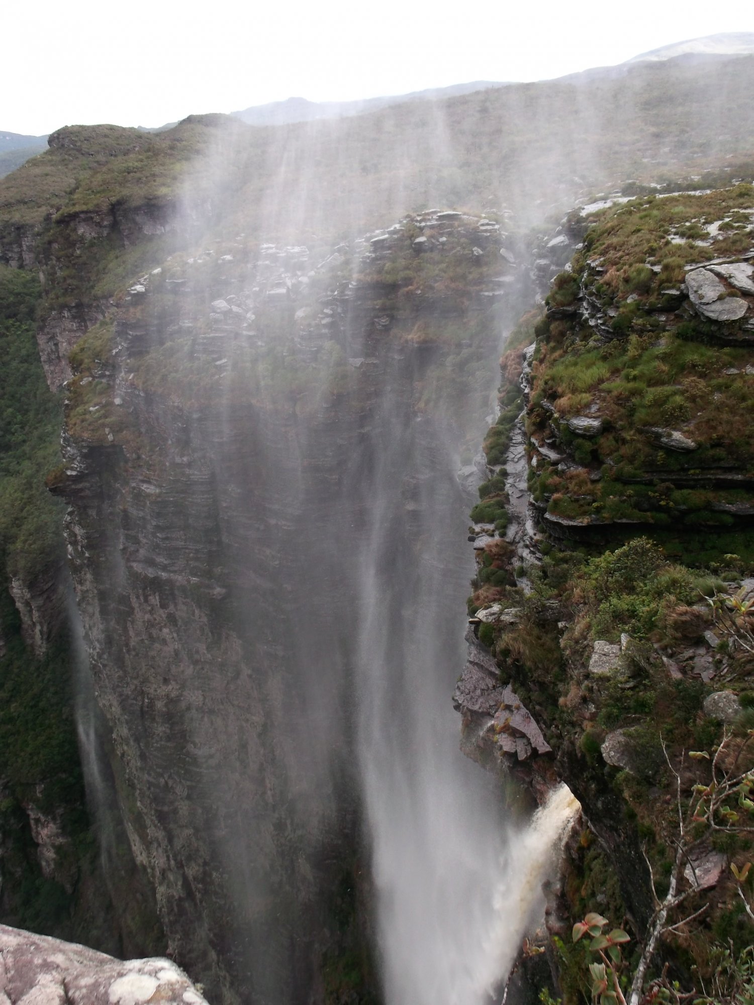 Márcio Rios do outro lado da parte superior da Cachoeira do Fundão
